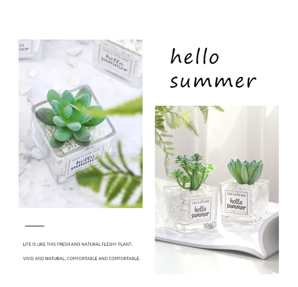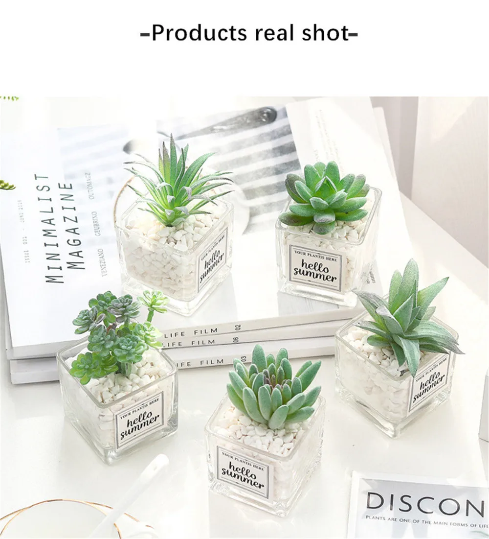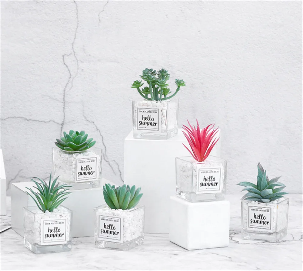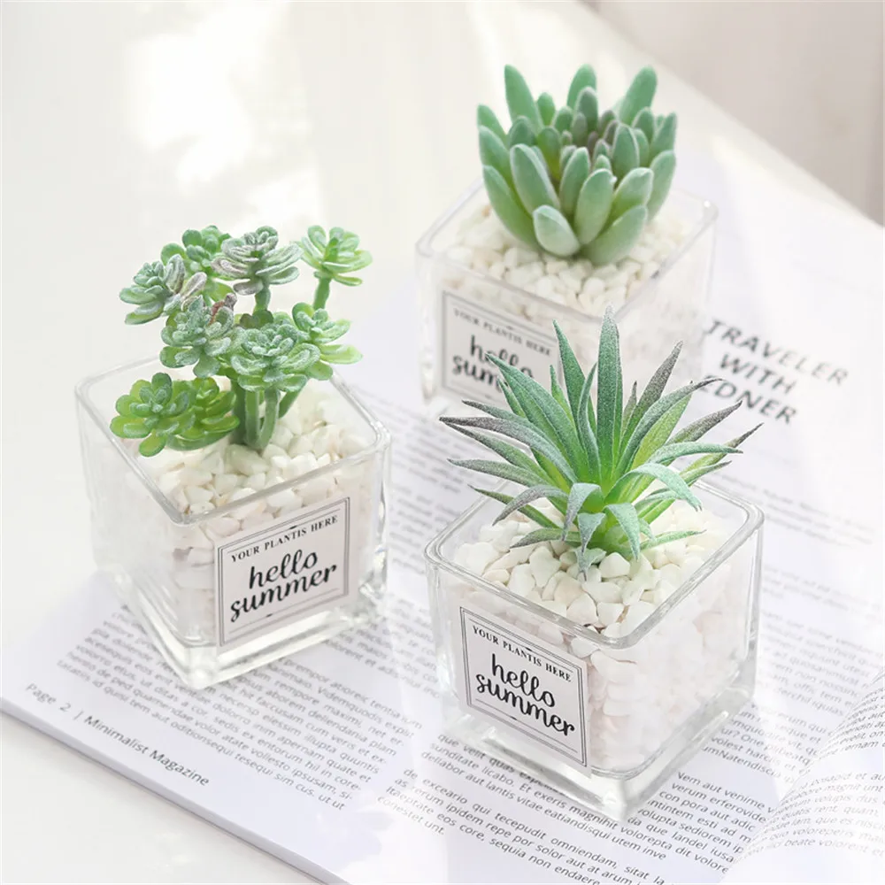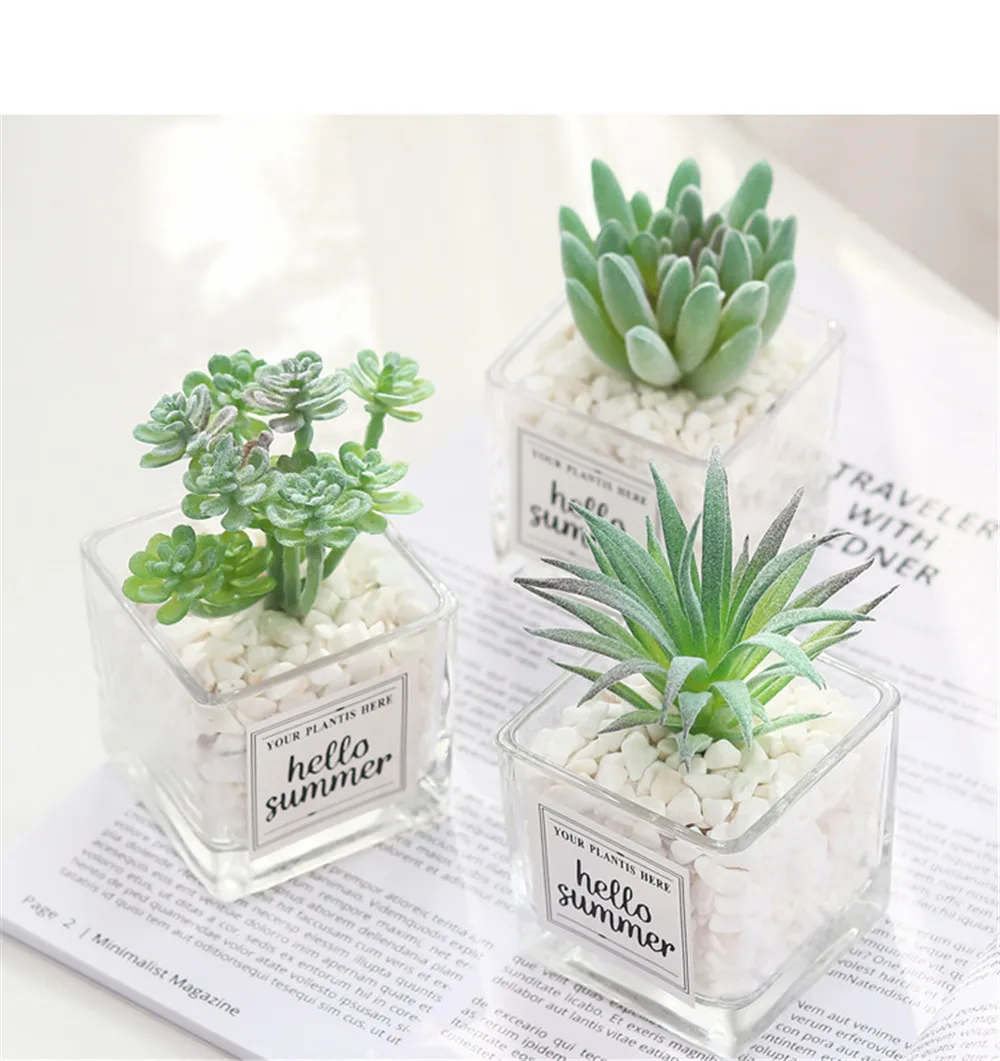 DIY Мини суккуленты моделирования украшения для бонсай стеклянная бутылка зеленых растений рабочего комнатные растения гостиная украшения офиса