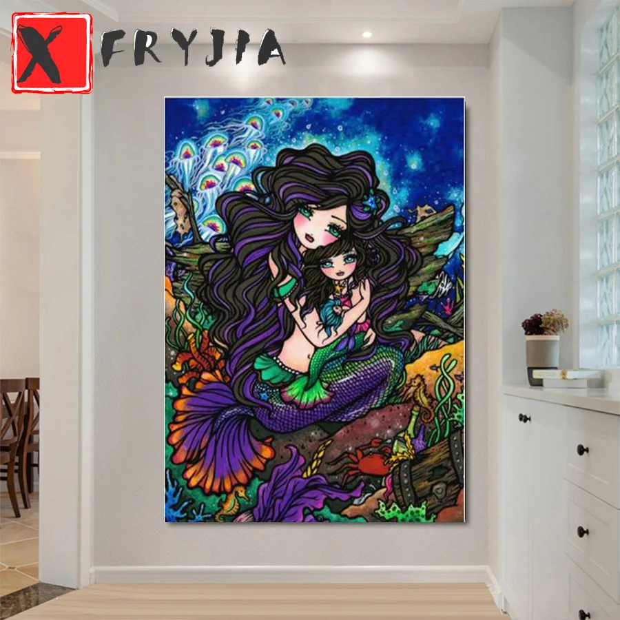 Алмазная вышивка с мультяшным изображением русалки 5D, алмазная живопись сделай сам, полная круглая квадратная Алмазная мозаика, вышивка, украшение для гостиной