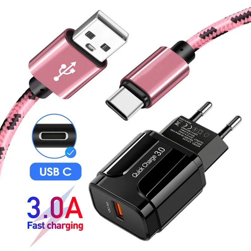 18 Вт QC 3,0 быстрое зарядное устройство X сетевой адаптер европейского стандарта USB кабель Type-C для зарядки телефона USB C провод для Samsung Galaxy S21 S9 S8 A12 A42 A52 5G usb кабель для Motorola G9 Plus G9 Play LG бархатные K41S K51S для Xiaomi Redmi Note 10s 10 9 pro мобильный телефон кабели зарядного устройства длиной 1 м/2 м.