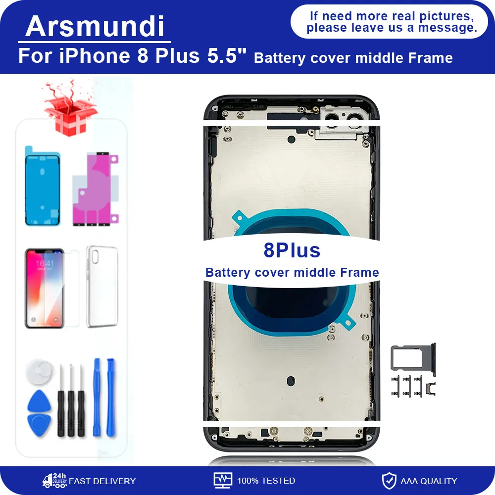 Задняя крышка батарейного отсека для iPhone 8 Plus 8 Plus + средняя рамка Шасси + лоток для SIM-карты + запасные части бокового ключа чехол без гибкого кабеля