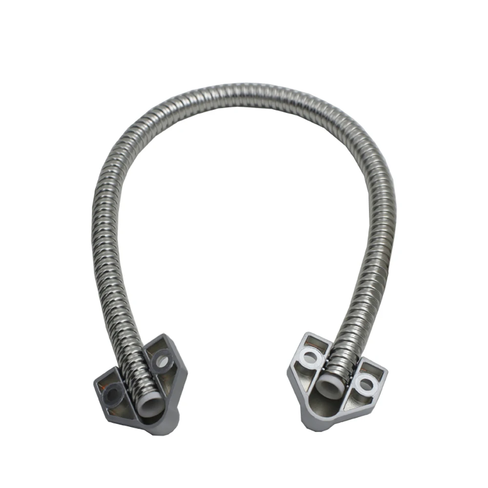 Устройство для скрещивания проволоки, металлическая трубка с открытым рукавом, кабельная линия для управления замком, дверной замок, защитная проволочная труба для контроля доступаПараметры:Материал шланга: нержавеющая стальМатериал головки: цинковый сплавВнутренний диаметр проходной линии: 6 ммДлина шланга: 424 ммКоличество проходящих проводов: один 6 мм сетчатый провод