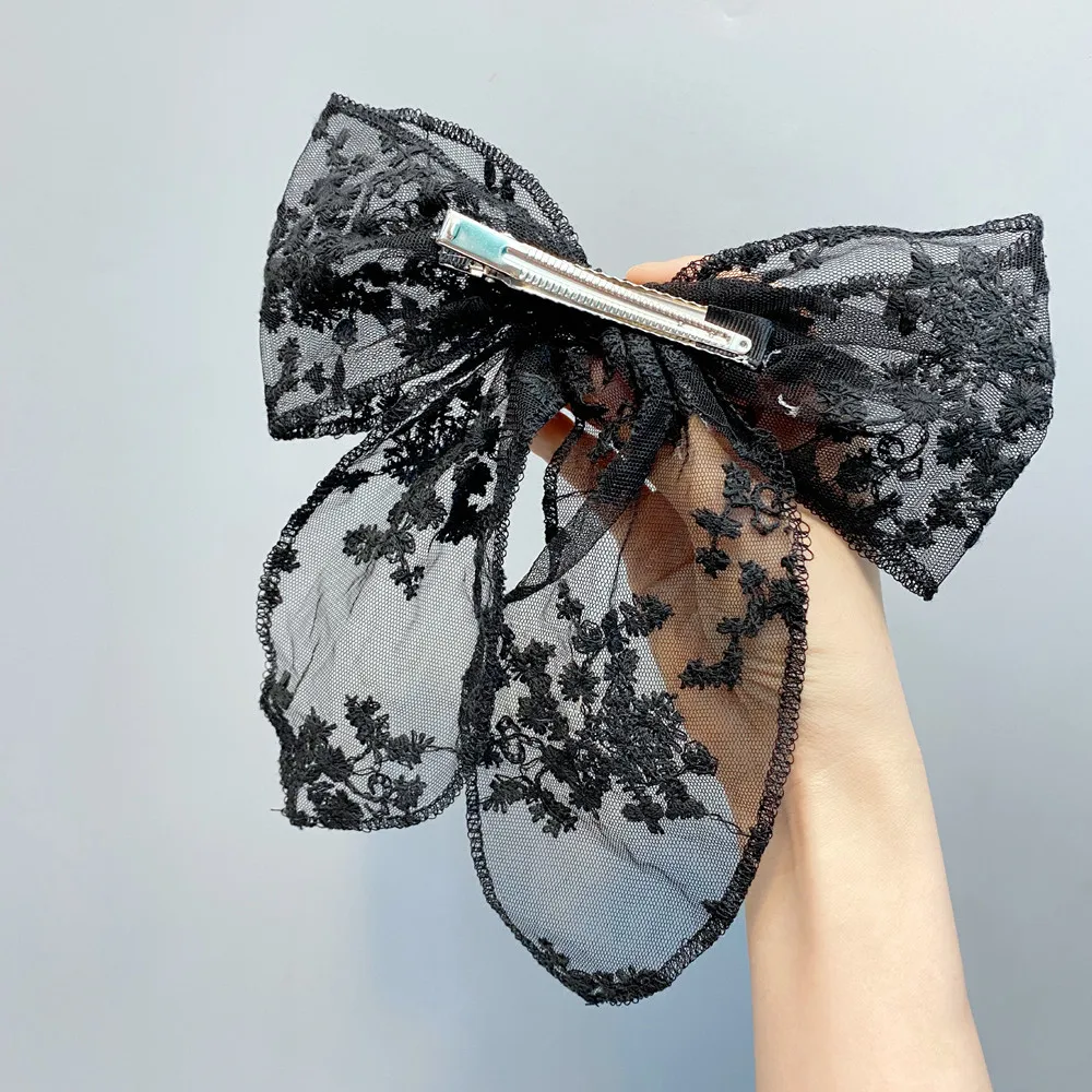 Повязка на голову женская, черная, белая, хлопковая, с кружевным бантиком, украшение для волос, ленточные заколки