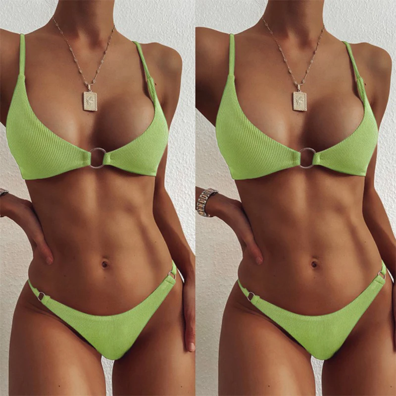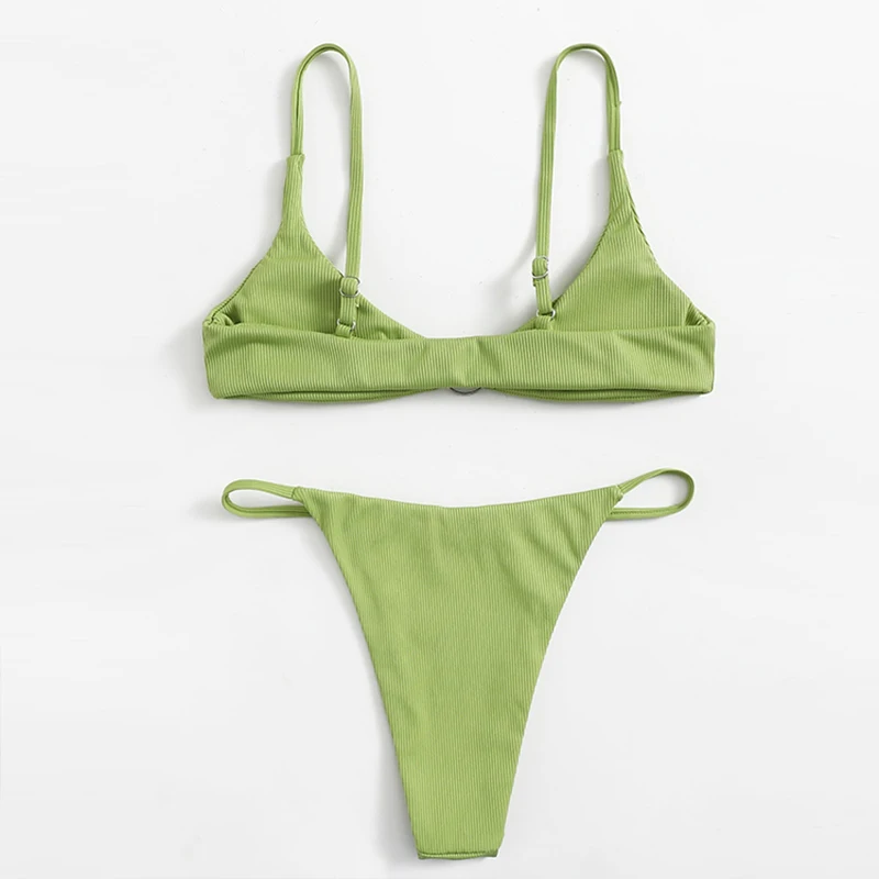 Купальник Mossha женский в рубчик, пикантный Зеленый бикини с низкой талией, пуш-ап, винтажная однотонная пляжная одежда, купальный костюм, 2021