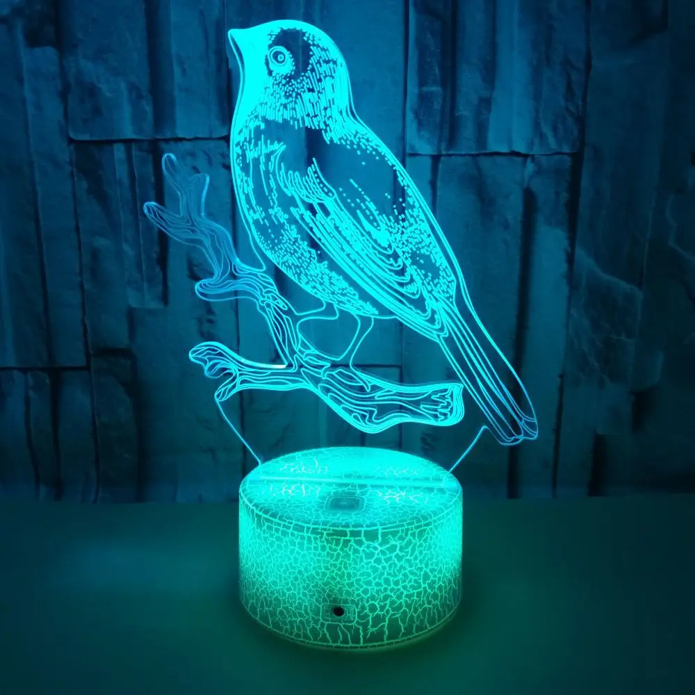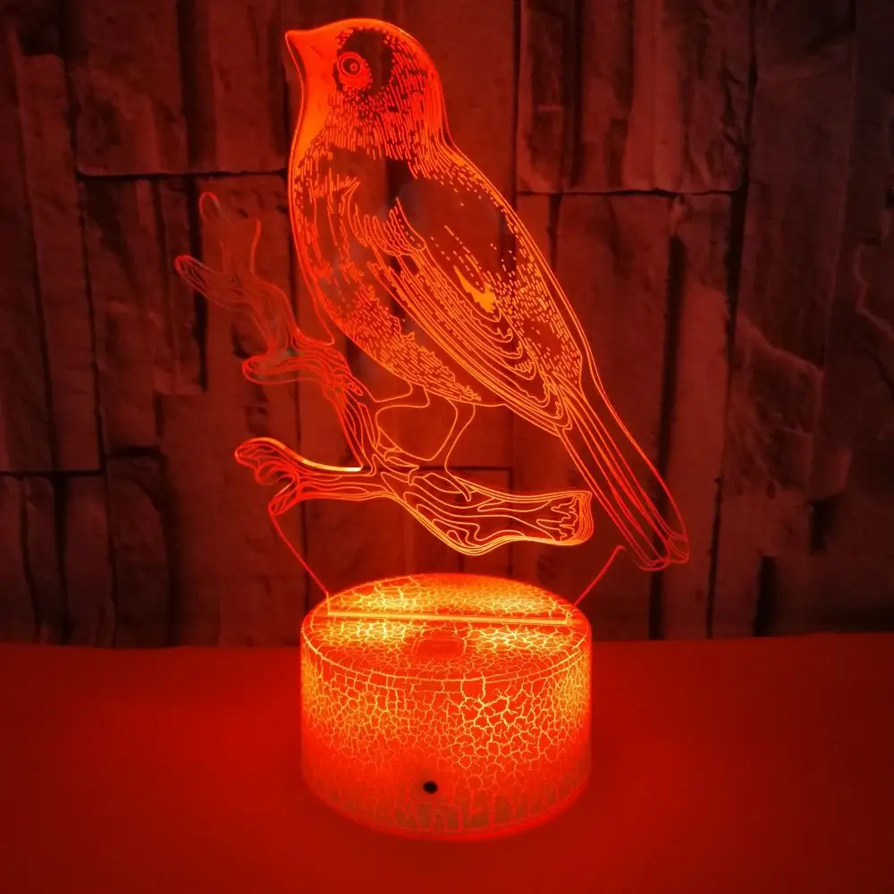 Светодиодный ночник Bird 3d с Usb и звездами, цветная Ночная лампа с дистанционным управлением, акриловая светодиодная маленькая Настольная лампа с визуальным изображением птиц