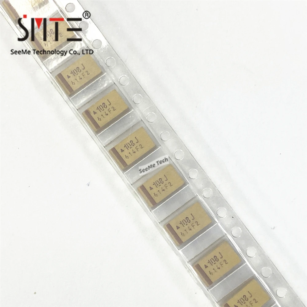 25 шт.лот TAJE108K006RNJ CAP TANT 1000 мкФ 10% V 6,3 2917 мкФ формованные Танталовые Конденсаторы 6,3 V 2917 (7343 метрические) 600 МОМ Размер E