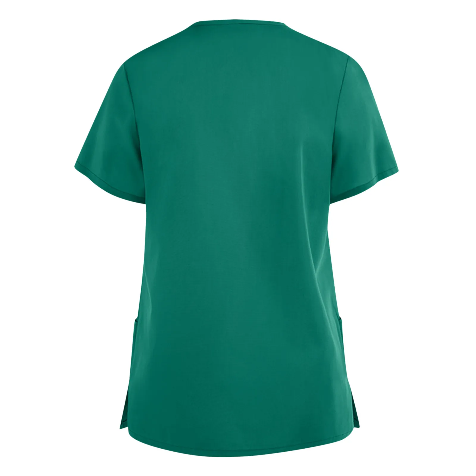 Женская блузка с коротким рукавом, Однотонная рубашка с V-образным вырезом и карманами для работников, пикантная летняя однотонная одежда 2021