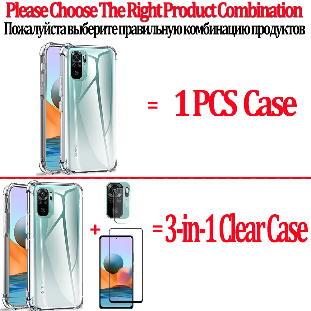Case For Redmi Note10 Pro,Xiaomi Note 10 S Soft Transparent Phone Case + Glass Xiomi Redmi Note 11S Not 10 Pro 360 Bumper Airbag Anti-Shock Protective Cover For Xiaomi Redmi Note 11 Pro 5G Silicone Case