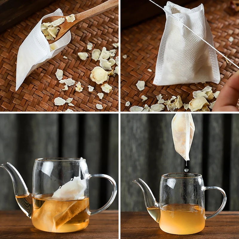 Пустые чайные пакетики 5 х7 см, 100 шт.лот, плотно закрывающиеся фильтры с завязками, для ароматизированных чаев, травяных рассыпчатых чаев, бумажные нетканые пакетики