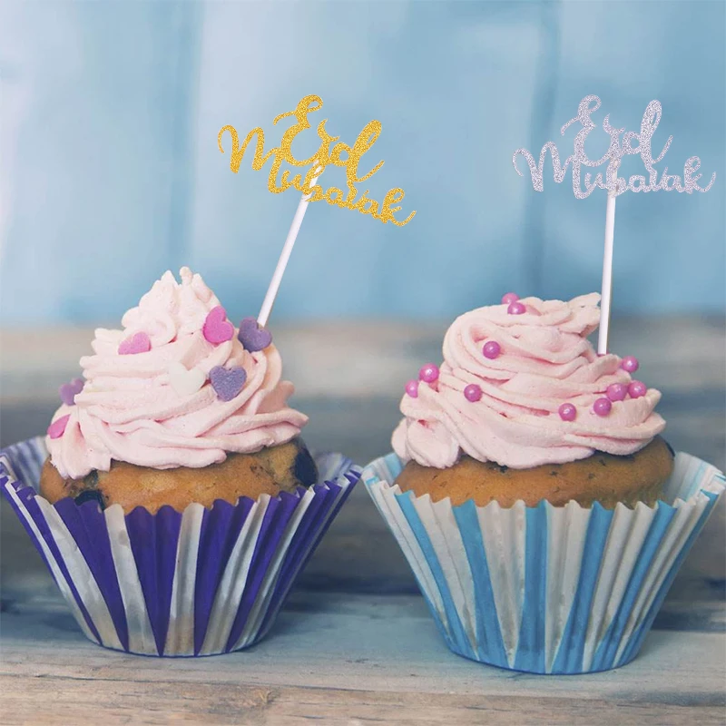 Украшения для Рамадана ИД Мубарак торт Топпер Форма Луны Блестящий золотистый Серебристый кекс Топпер мусульманский десертный Декор