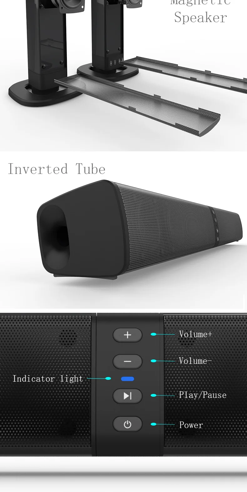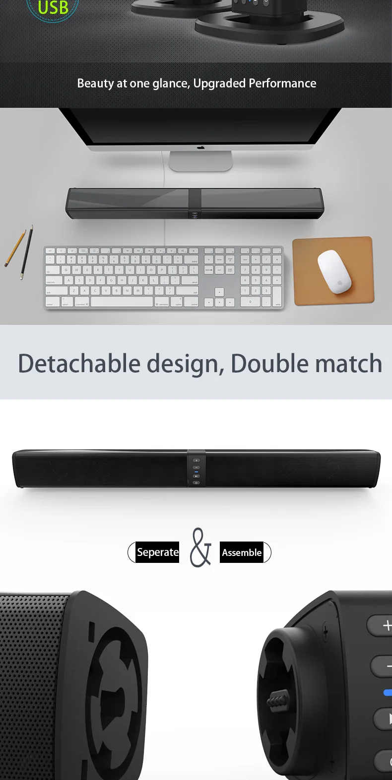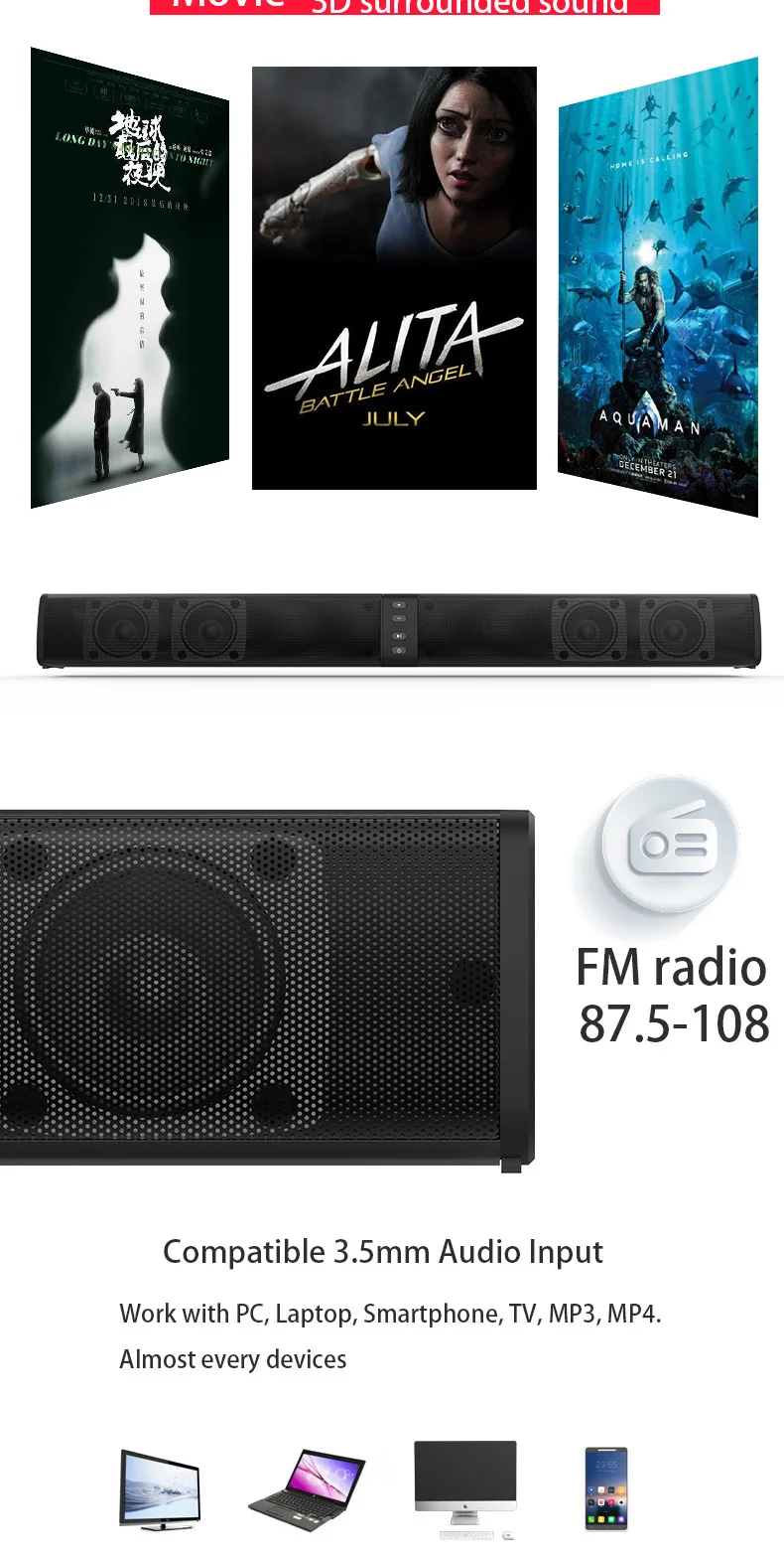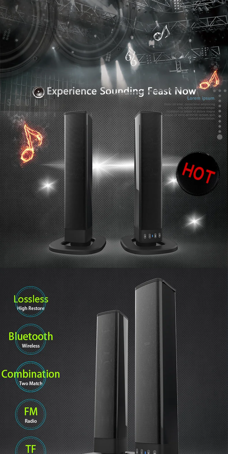 Беспроводная Bluetooth колонка, отдельная звуковая панель, музыкальный центр, колонка для компьютера, сабвуфер для телевизора с Fm-радио, TF, AUX