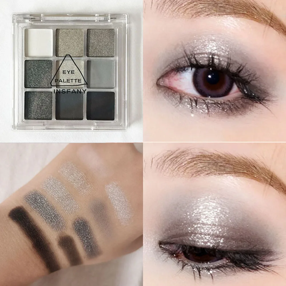 Палетка теней для век, 9 цветов, тени для век, оттенки, черные, дымчатые, матовые, блестящие, Палетка с дымчатыми оттенками тени для век