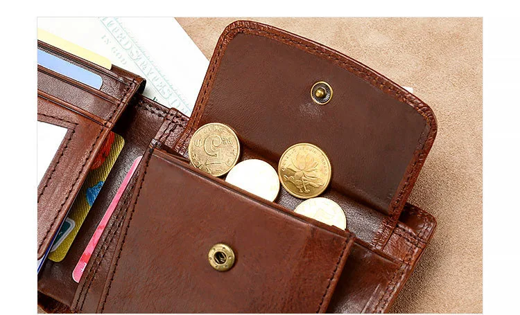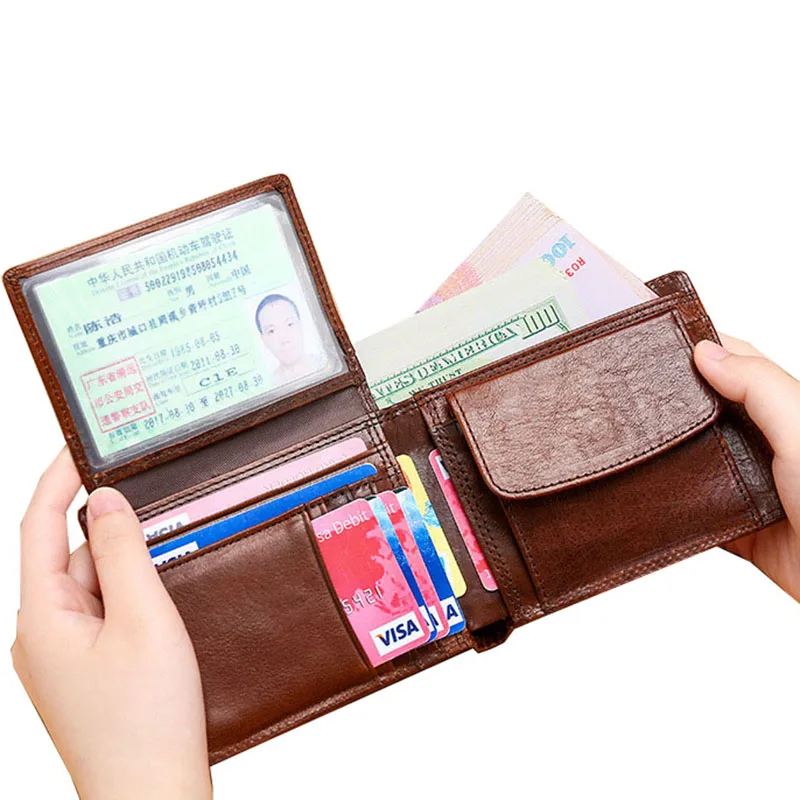Классические мужские кошельки, винтажный кошелек из натуральной кожи, короткий складной бумажник с RFID и защитой от кражи, кредитница для мужчин, 2021