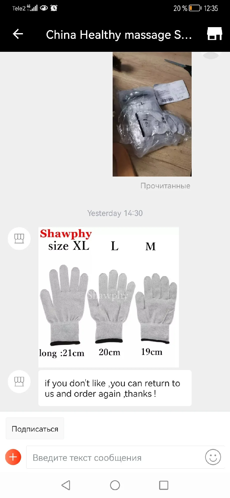 Я довольна заказом! ❤️ 10 пар, каждая в индивидуальной упаковке, можно смело распечатывать при клиенте его индивидуальную пару. Распаковала 1 пару на выбор, РАБОТАЕТ, как мне показалось ещё лучше чем у меня были. Размер М идеально подошёл на руку девушки 44-46р с короткими ногтями Подошли на биоэнергомассажер FOHOW без проблем. Клепки хорошо приделаны. С продавцом не общалась, заказ он отправил быстро, почта России конечно задержала посылку. Товар рекомендую и продавец не подвёл, с меня 5⭐️