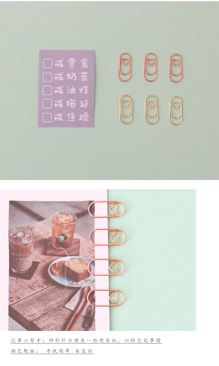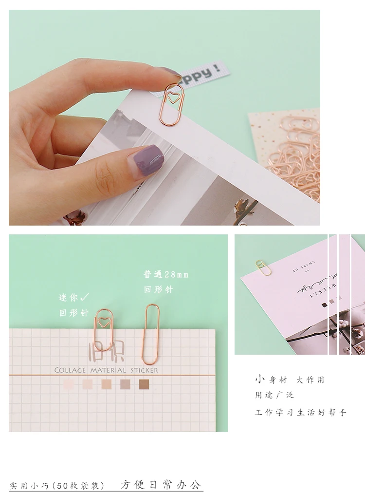 50 шт.пакет металла мини сердце из розового золота Бумага зажим зак...