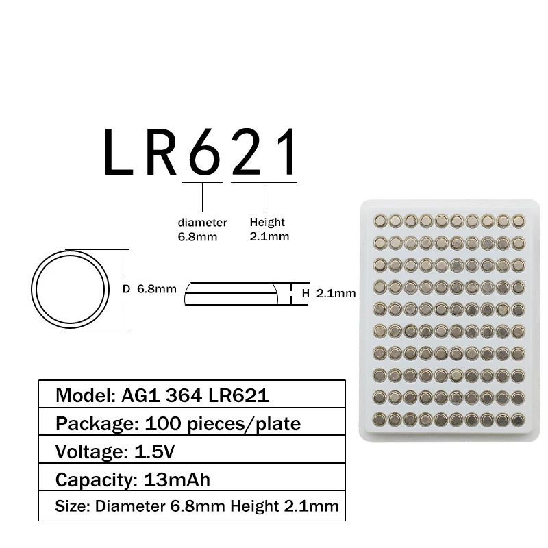 600 шт. AG1 батарея 1,55 В щелочная кнопка батареи для монет 364 SR621SW LR621 621 LR60 CX60 для часов игрушки