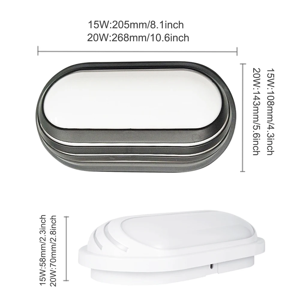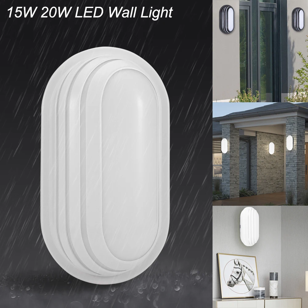 Настенный светильник, 15 Вт, 20 Вт, светодиодный, водонепроницаемый, IP65, влагостойкий, для улицы, сада, овальный, для ванной комнаты, D30