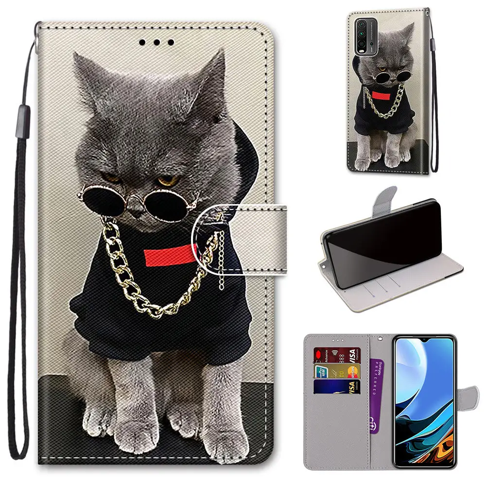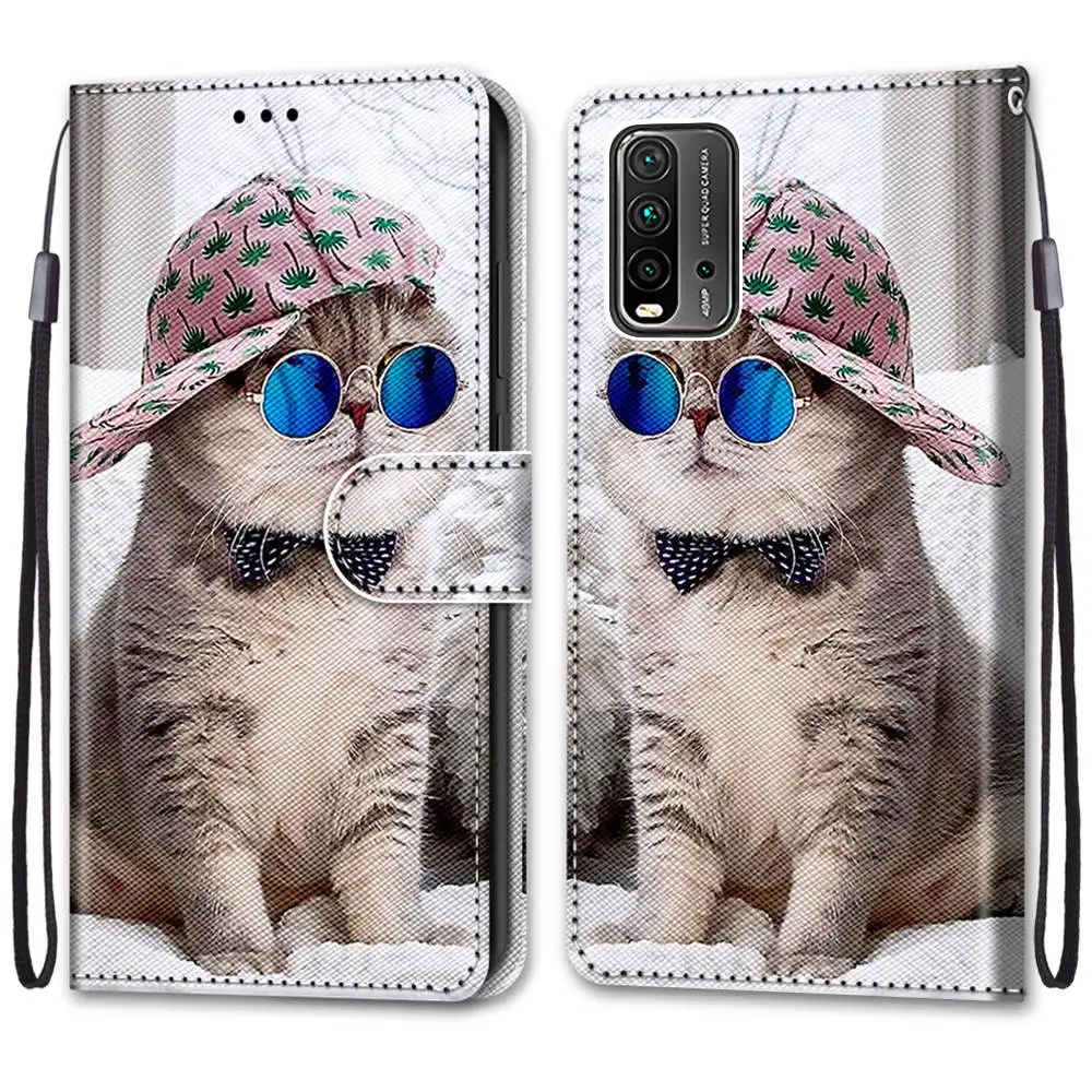 Animal Cat Flower Pattern Wallet Flip Cover For Xiaomi Mi 10T