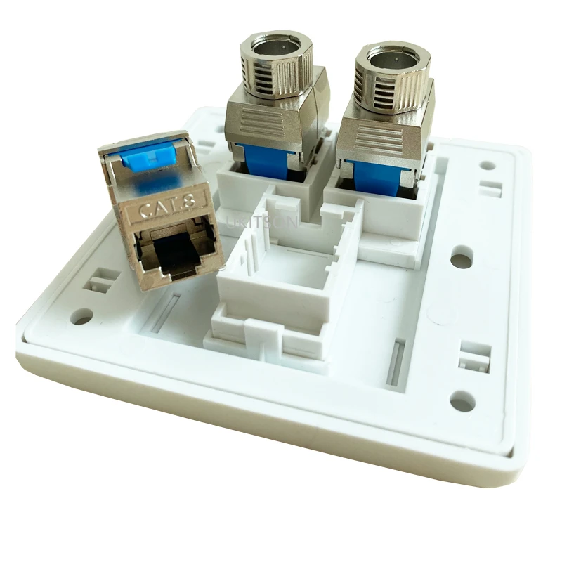 1 шт. х три порта CAT8 RJ45 стеновая панель (экранированный тип, материал из цинкового сплава)