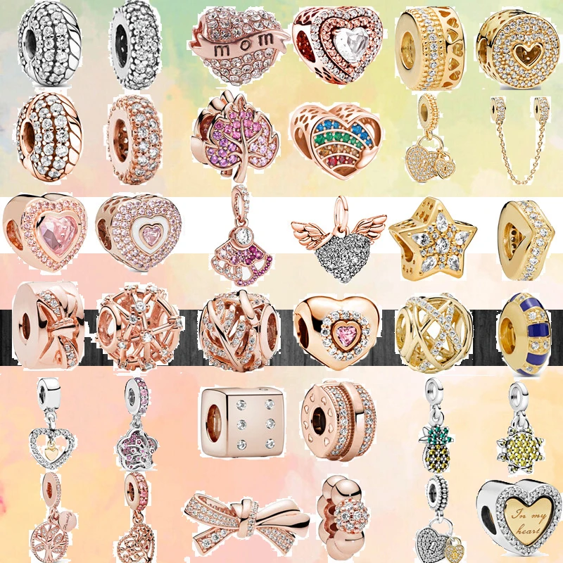 Новые бусины из циркония в виде крыльев, Листьев, цветов, сердца, подходят для оригинальных шармов Pandora, серебряный браслет сделай сам, Женские Ювелирные изделия для девочек