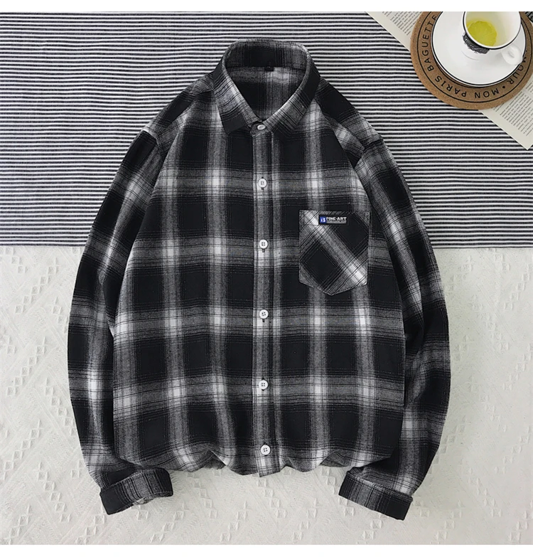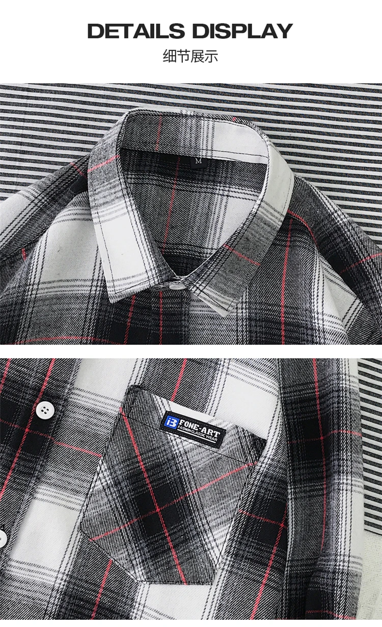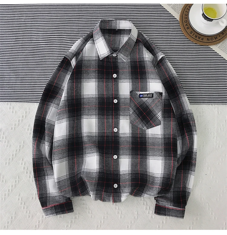 Рубашка Мужская Фланелевая в клетку, хлопковая Повседневная приталенная, с длинным рукавом, мягкая удобная блуза, Брендовое платье, весна-осень