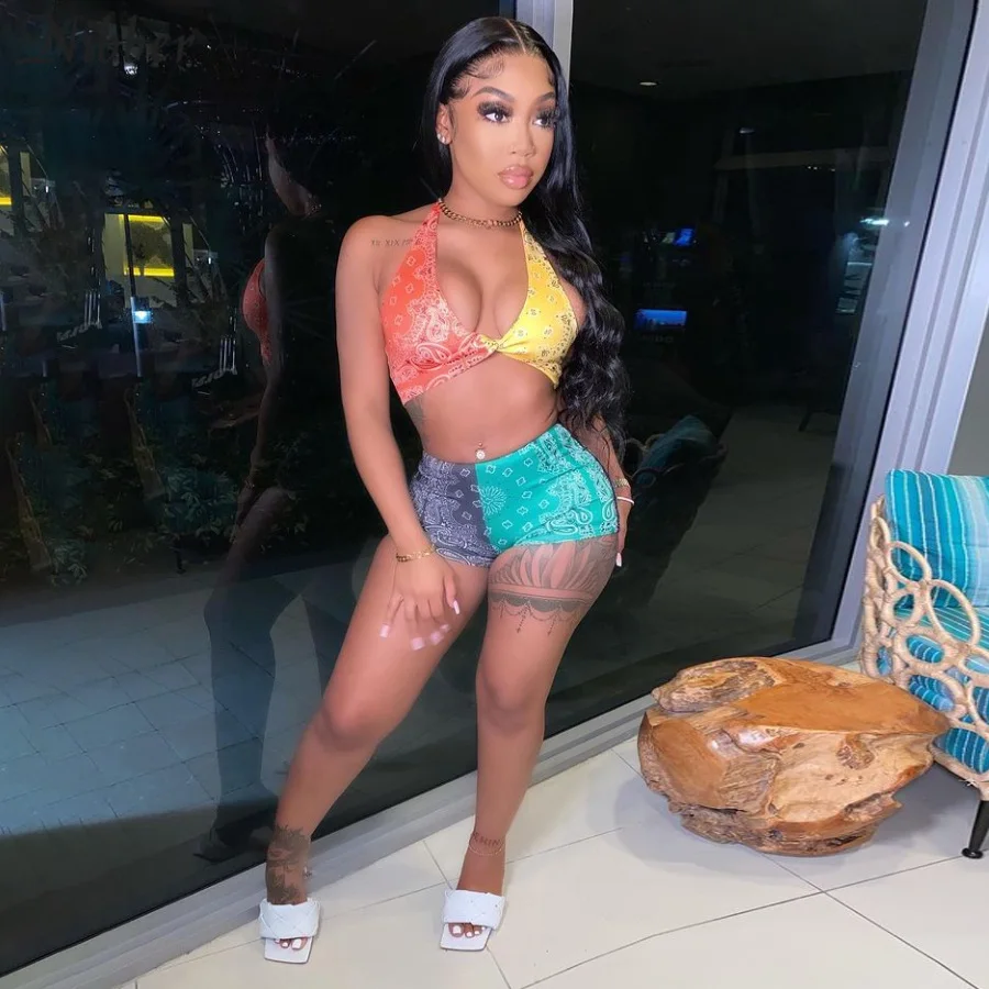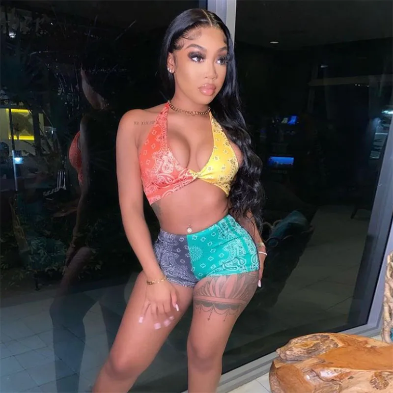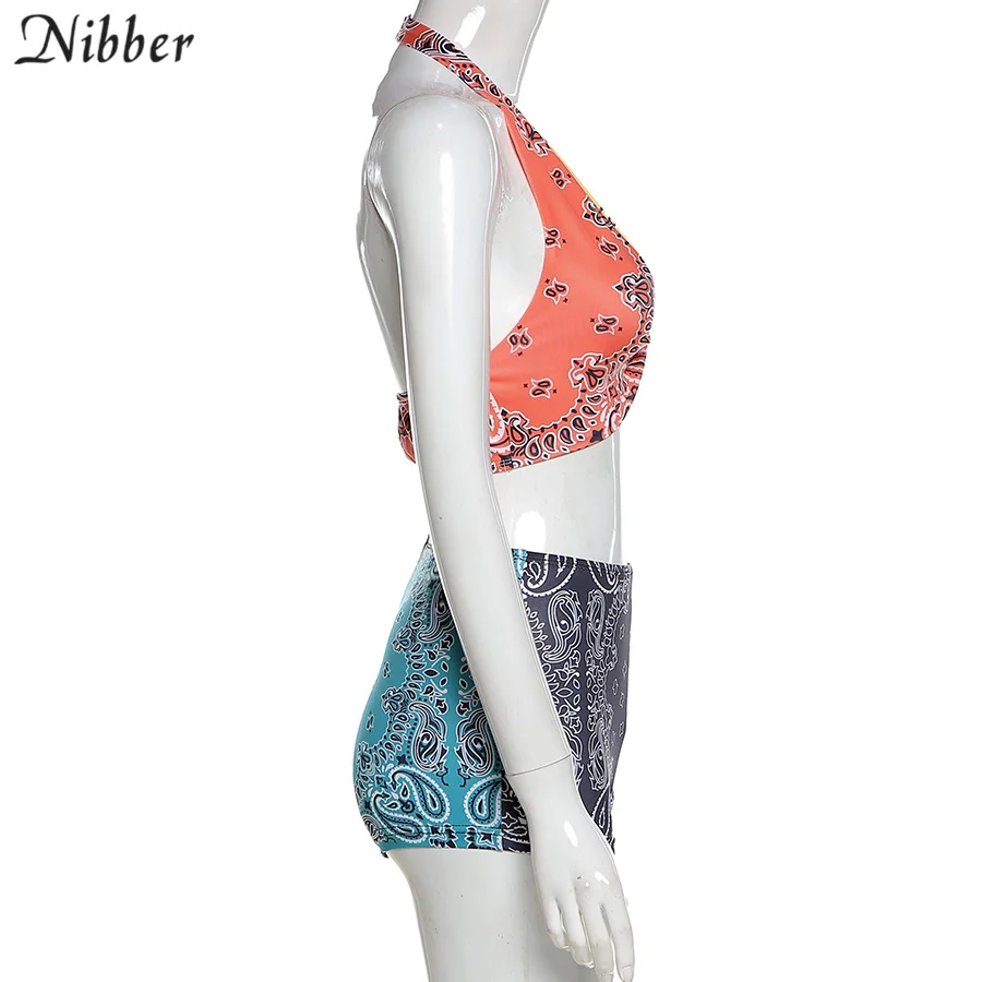 Костюм Nibber женский с топом на бретелях в стиле ретро, Асимметричные шорты на шнуровке, пляжная одежда из двух предметов, хит продаж, лето 2021
