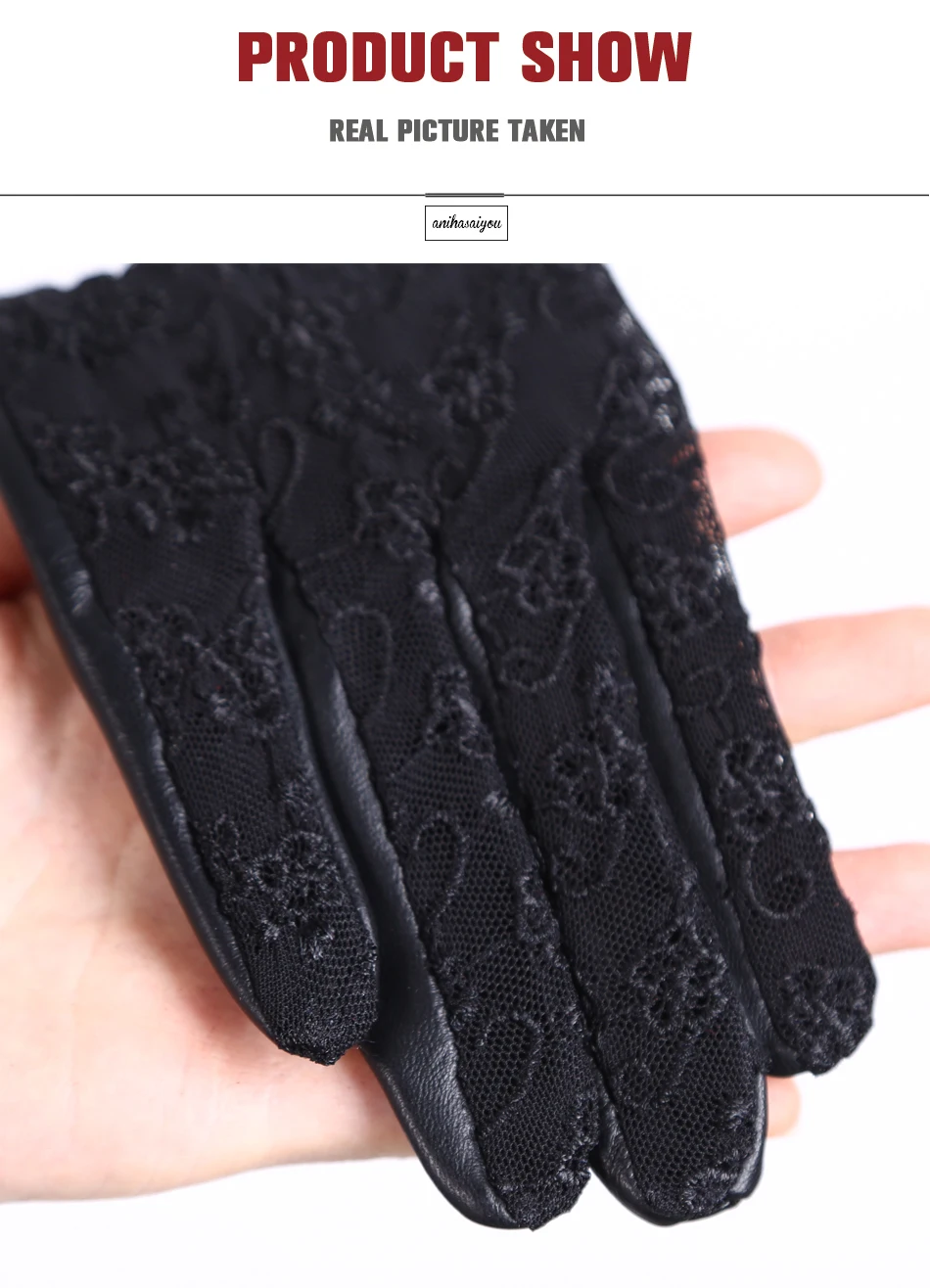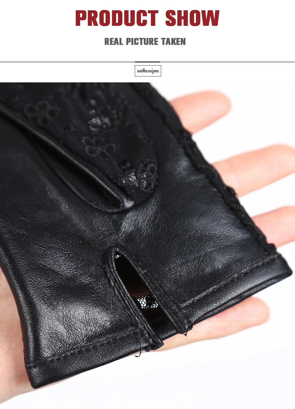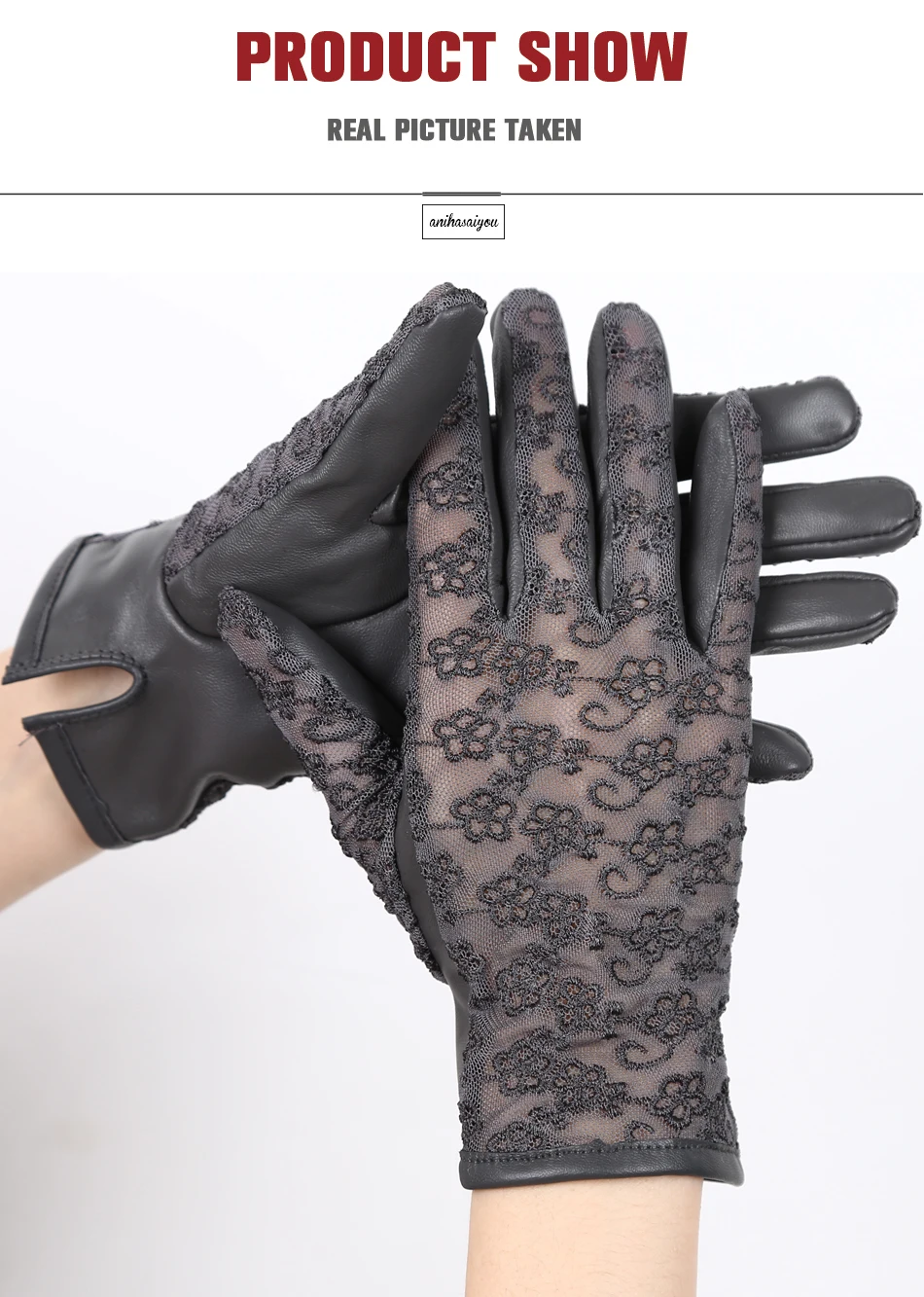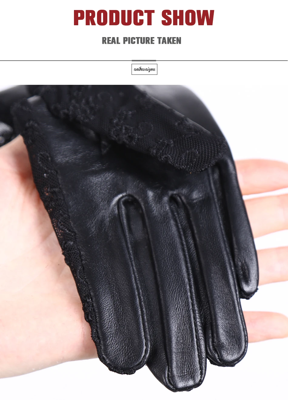 Сексуальные кружевные перчатки из овчины, Модные кожаные перчатки для вождения, женские разноцветные кожаные перчатки, удобные-2016