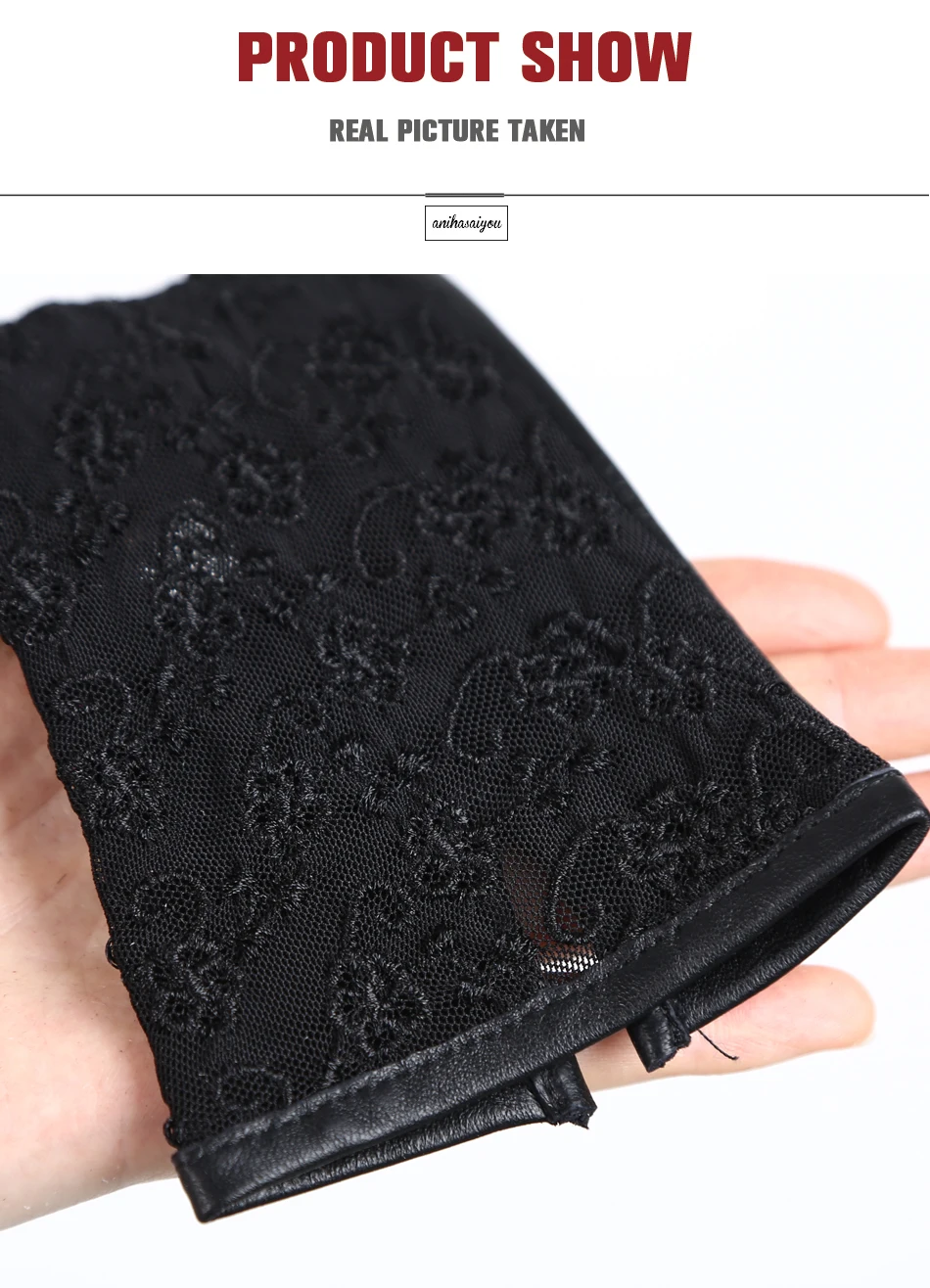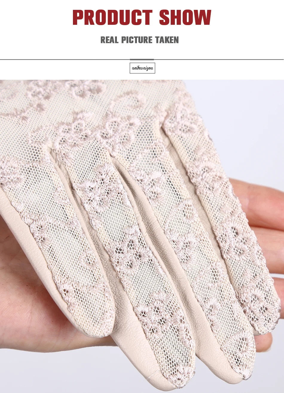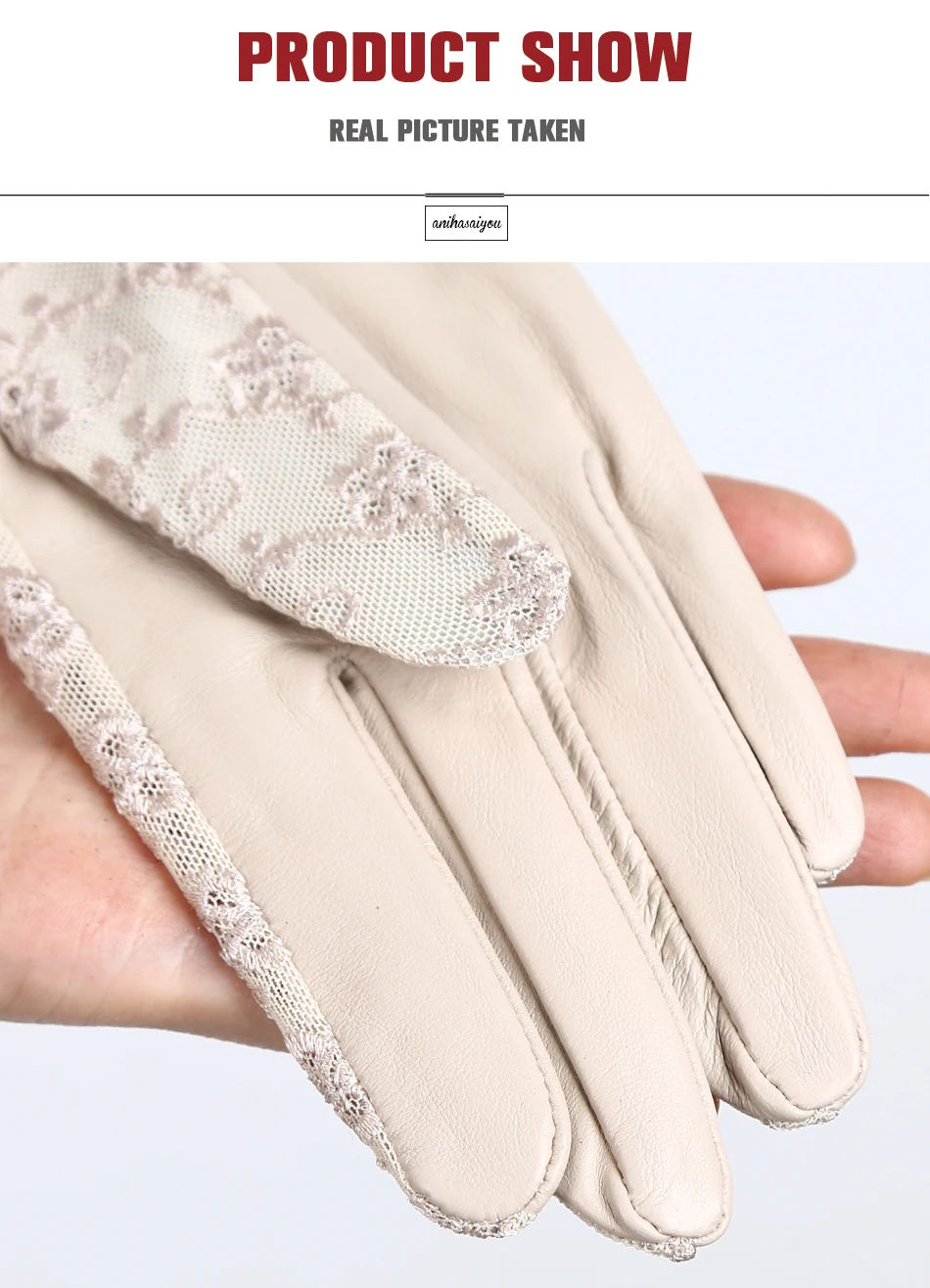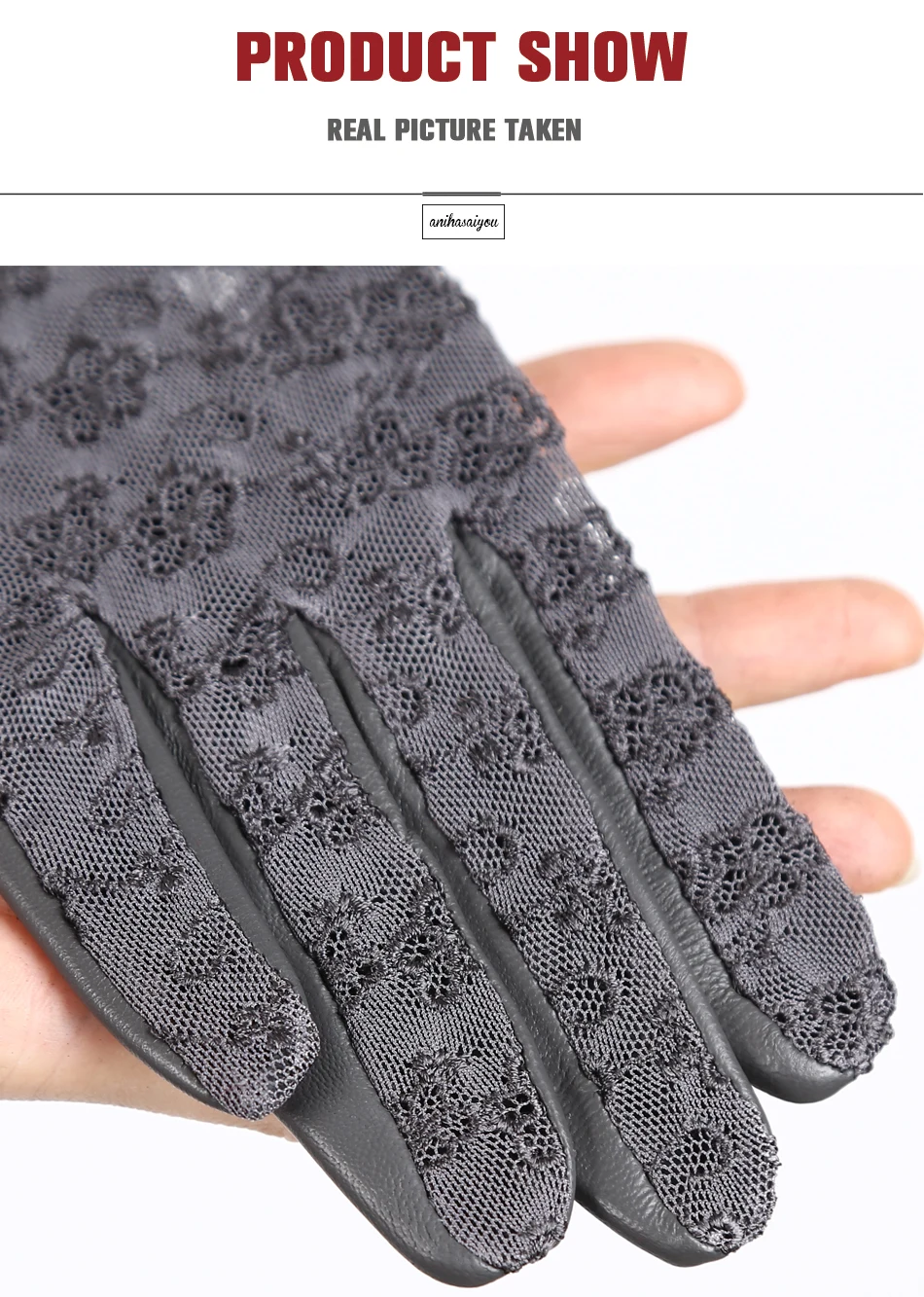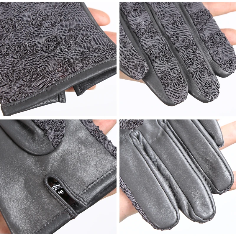 Сексуальные кружевные перчатки из овчины, Модные кожаные перчатки для вождения, женские разноцветные кожаные перчатки, удобные-2016