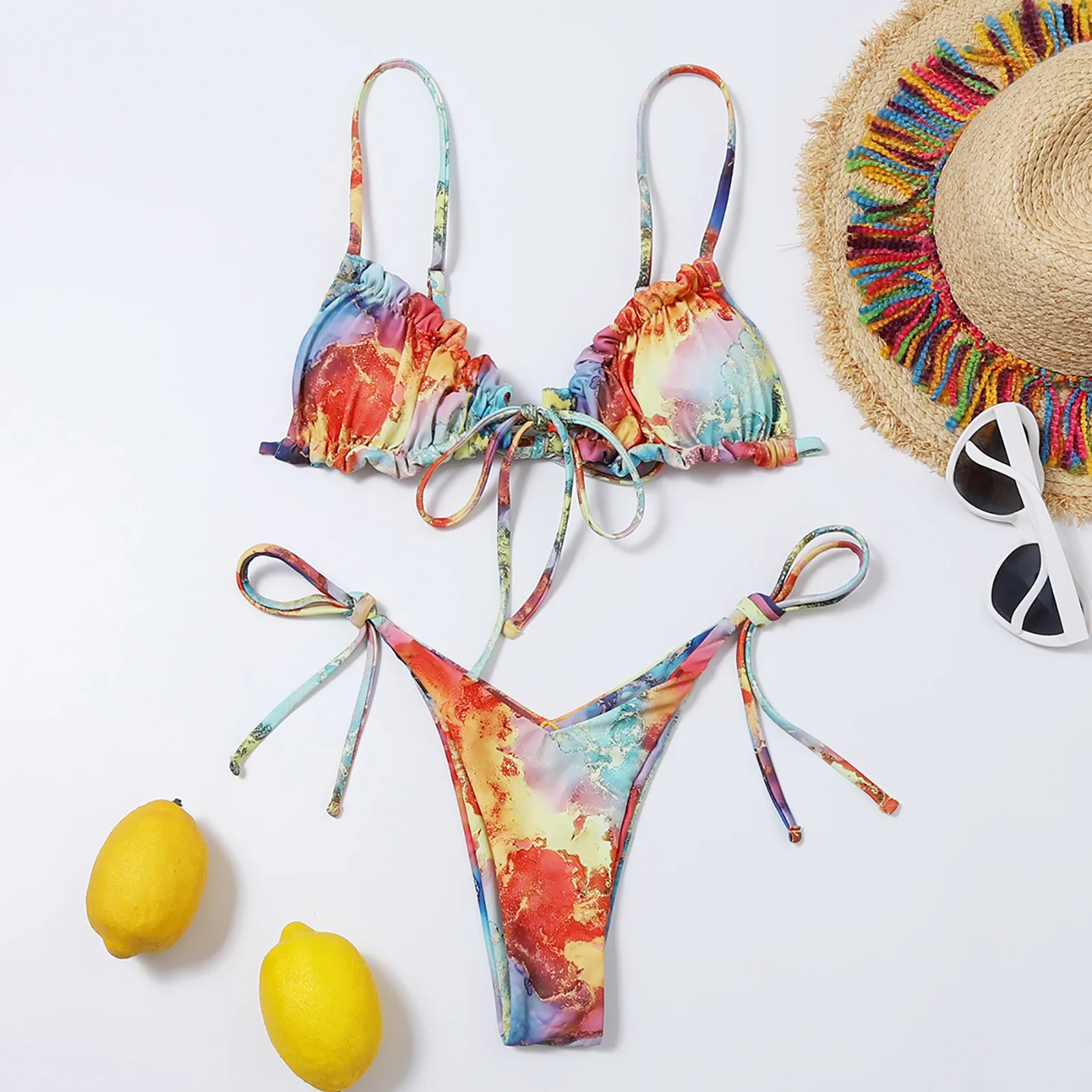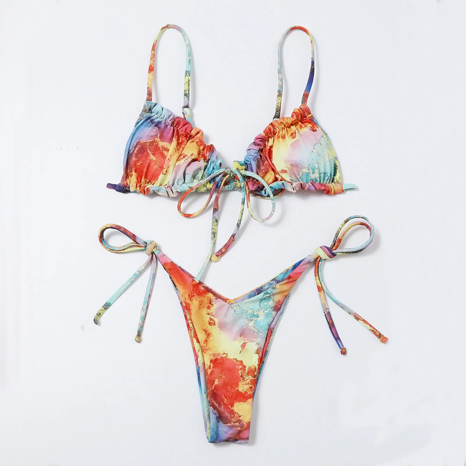 Сексуальное бикини с принтом тай-дай, Женский бандажный купальник женские купальные костюмы, комплект микро-бикини, летние бразильские стринги, пляжная одежда, купальный костюм # T4G, 2021
