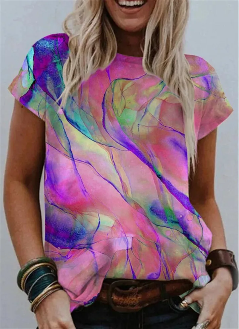 Женская футболка с коротким рукавом, круглым вырезом и принтом, размеры до 5XL