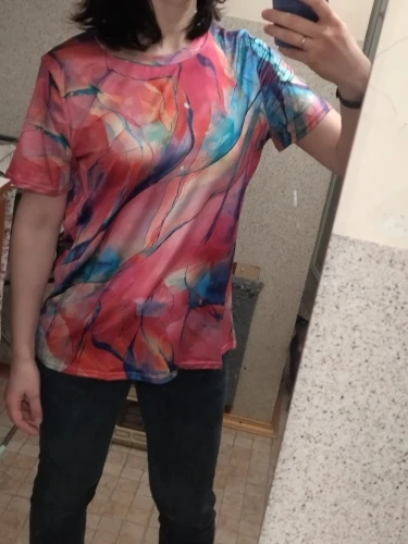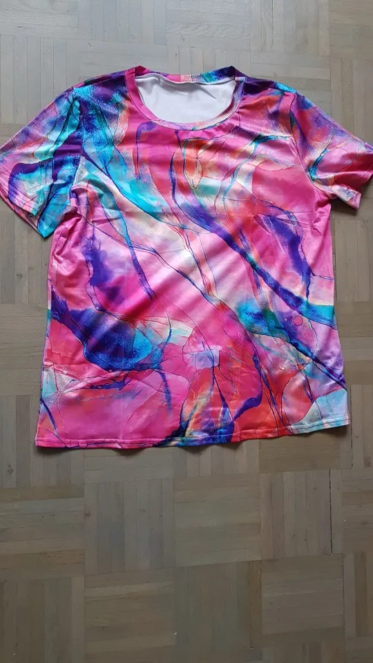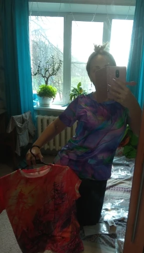 Футболка понравилась, яркая.Купила для фитнеса. Размер XL скорее 48...