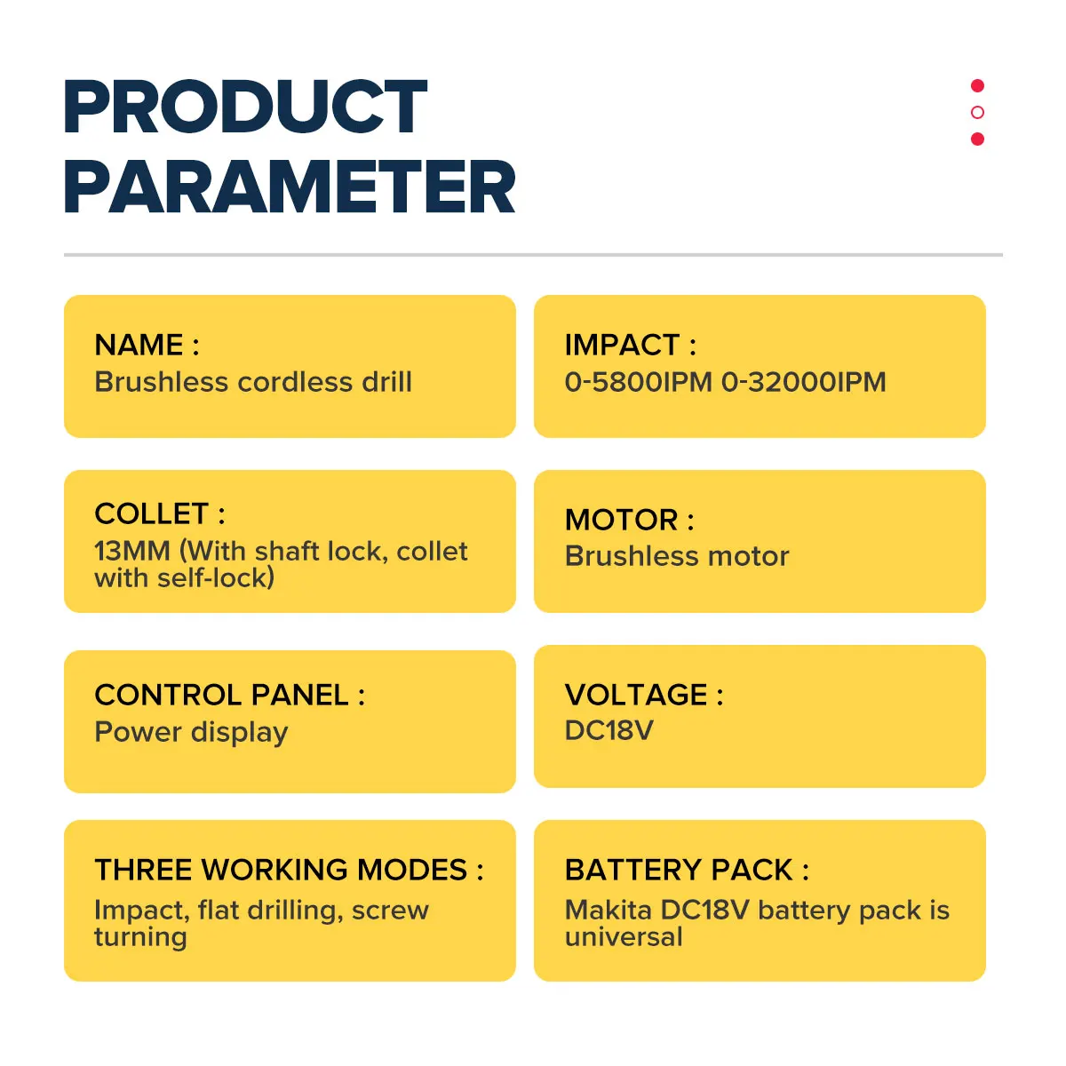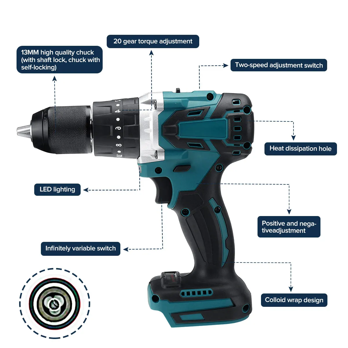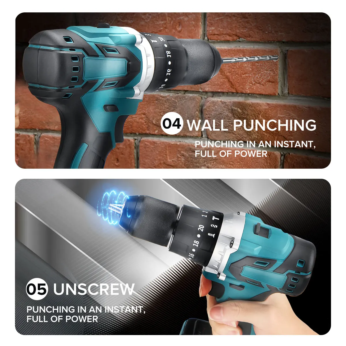 Аккумуляторная дрель-перфоратор, бесщеточная электрическая отвертка 3 в 1, 2 скорости, 13 мм, 20 + 3