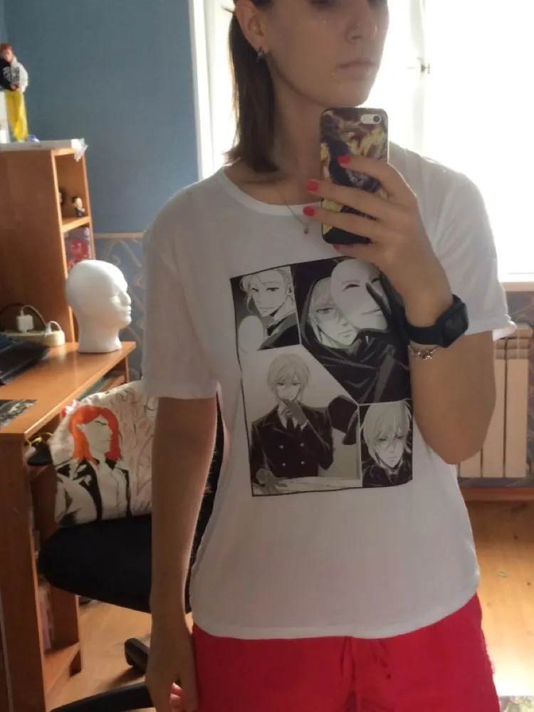 Заказала футболки в трёх разных магазинах. Выиграл соревнование по параметрам цена/качество/скорость/общение этот магазин, JM 101 Store! Продавец ответил молниеносно, тут же согласовали все детали, обсудили и согласовали макеты, продавец изготовил и отправил товар, и именно этот товар прибыл в Москву первым из всех заказов, раньше дней на 8-10, чем остальные. Самые лучшие рекомендации продавцу! Качество печати хорошее, ткань синтетическая, но приятная. Размеры маленькие, например, заказанная в этом магазине футболка M меньше по размеру, чем заказанная в другом магазине XS. Подойдёт хрупким девушкам и детям. А Майка размером M, кстати, наоборот большая, в отличии от футболок-маломерок. Спасибо продавцу!
