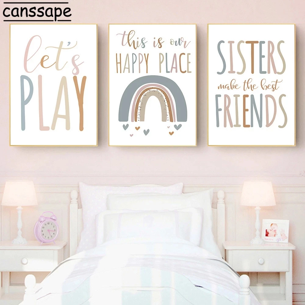 Настенная картина для детской комнаты, Картина на холсте, радужные плакаты, печать сердца, Постер сестры, картины с цитатами, декор для детской спальни