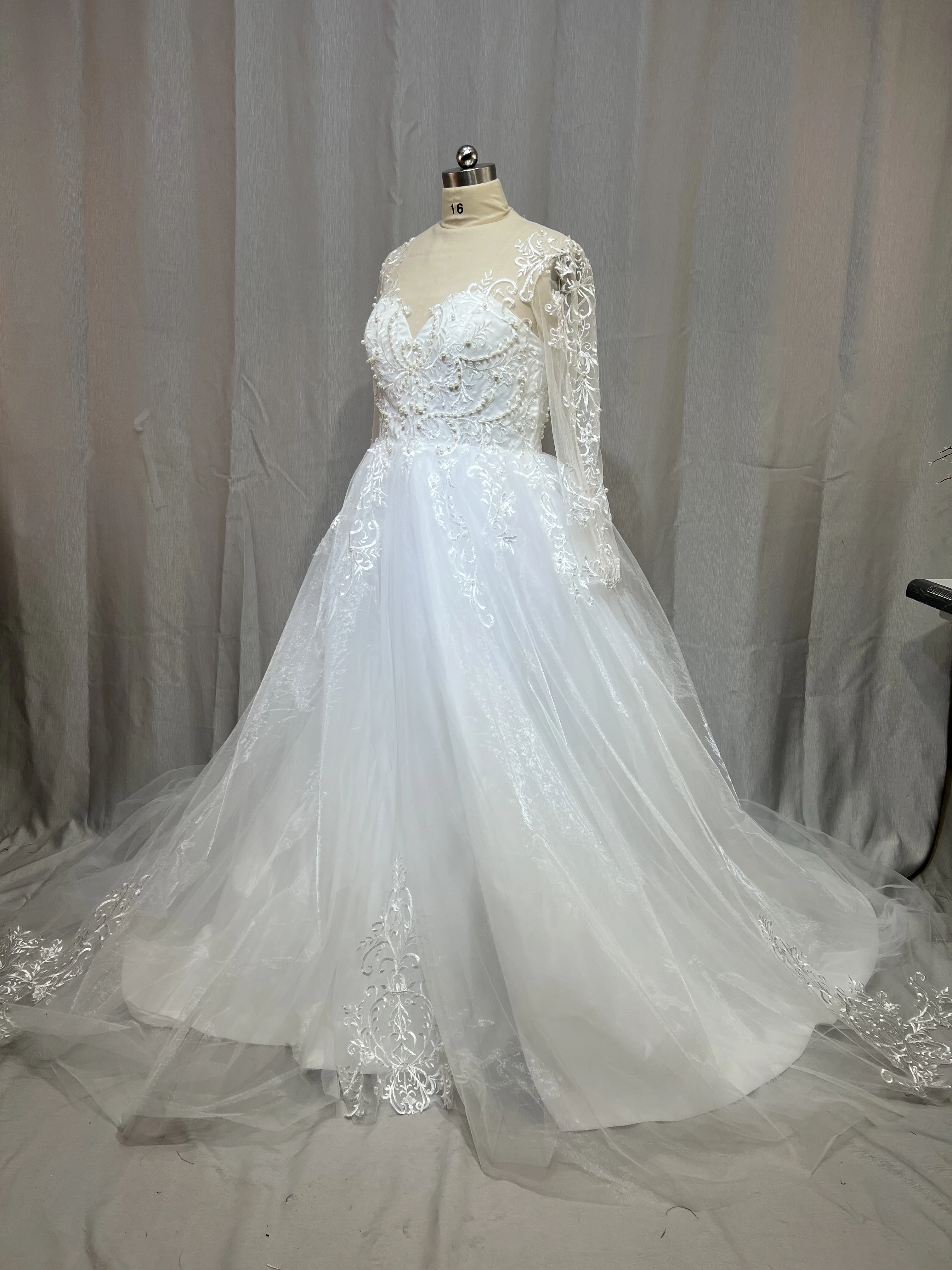 ТРАПЕЦИЕВИДНОЕ кружевное свадебное платье с аппликацией, модель 202...