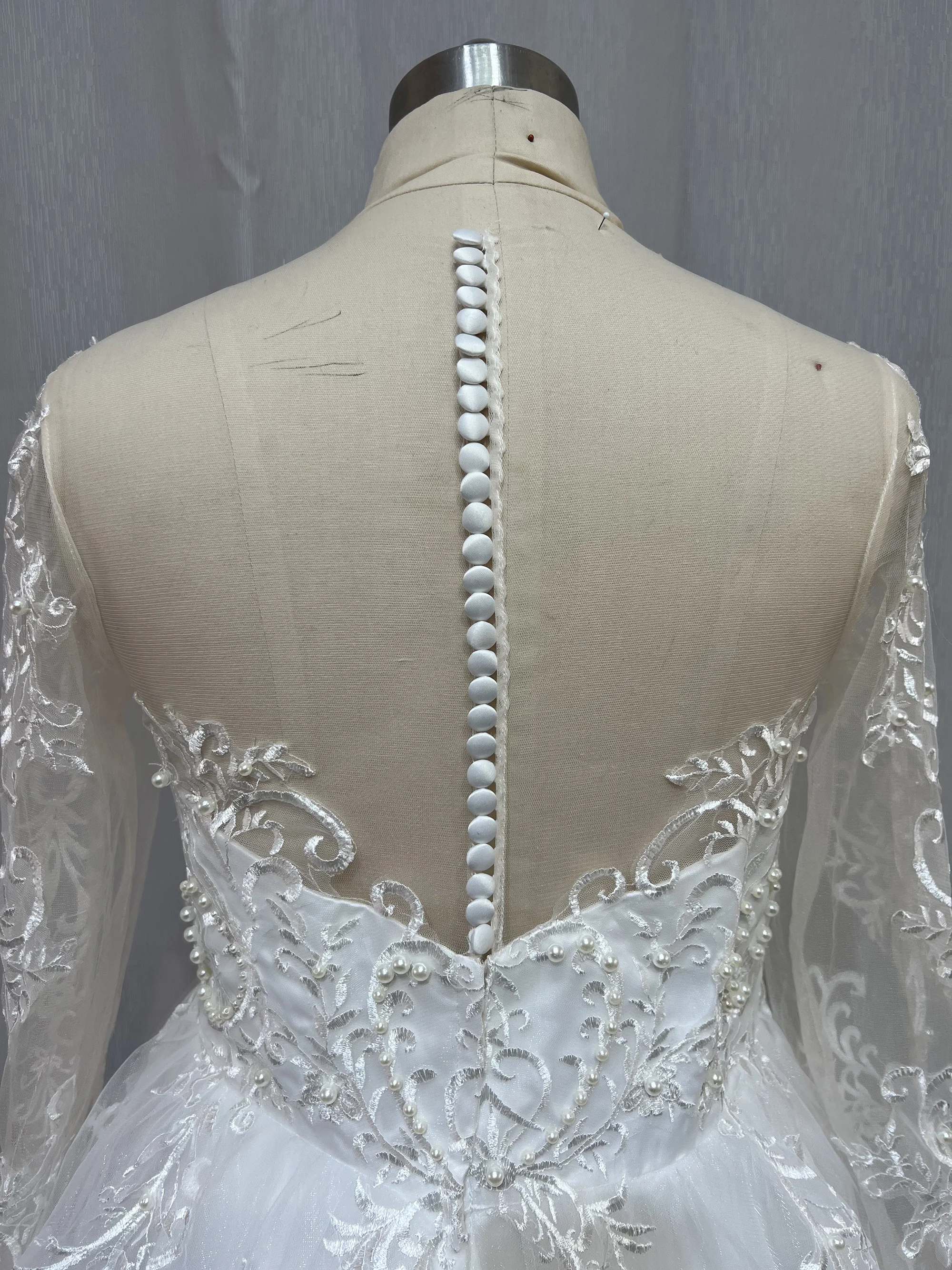Кружевное бальное платье с длинными рукавами и открытой спиной