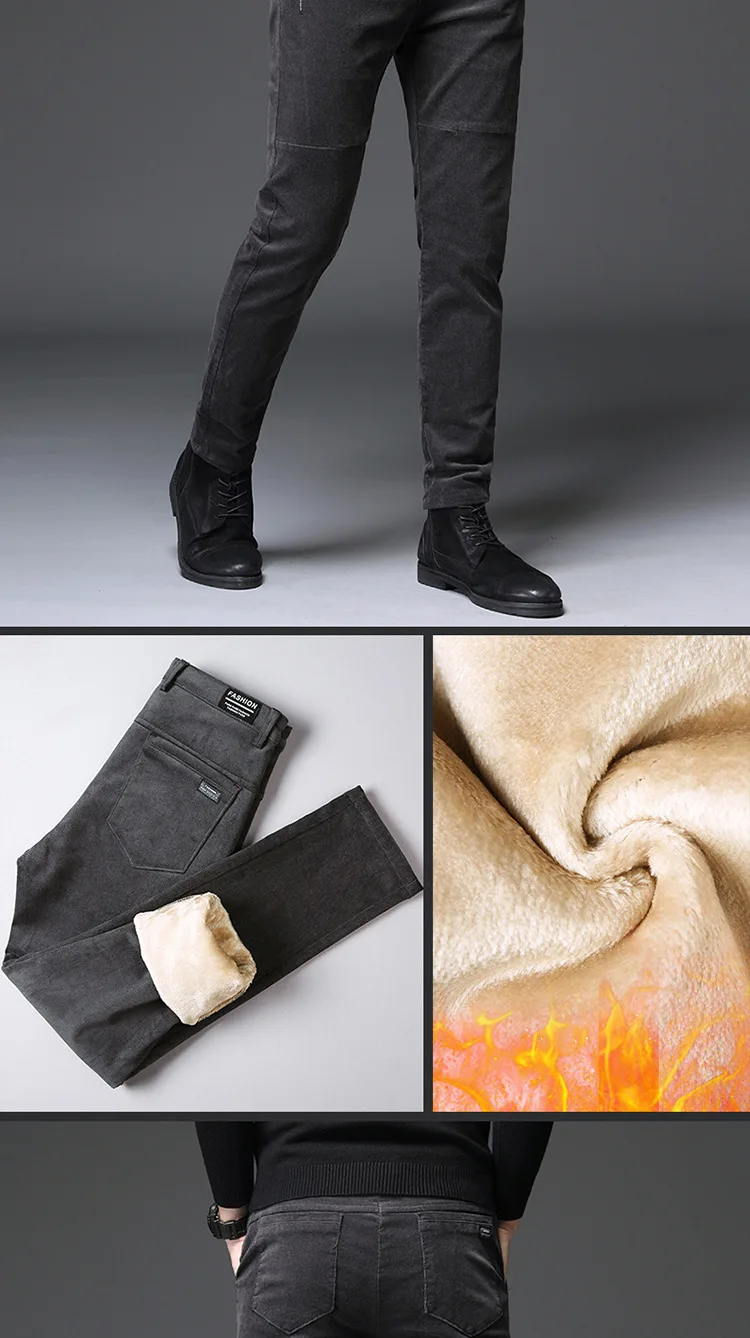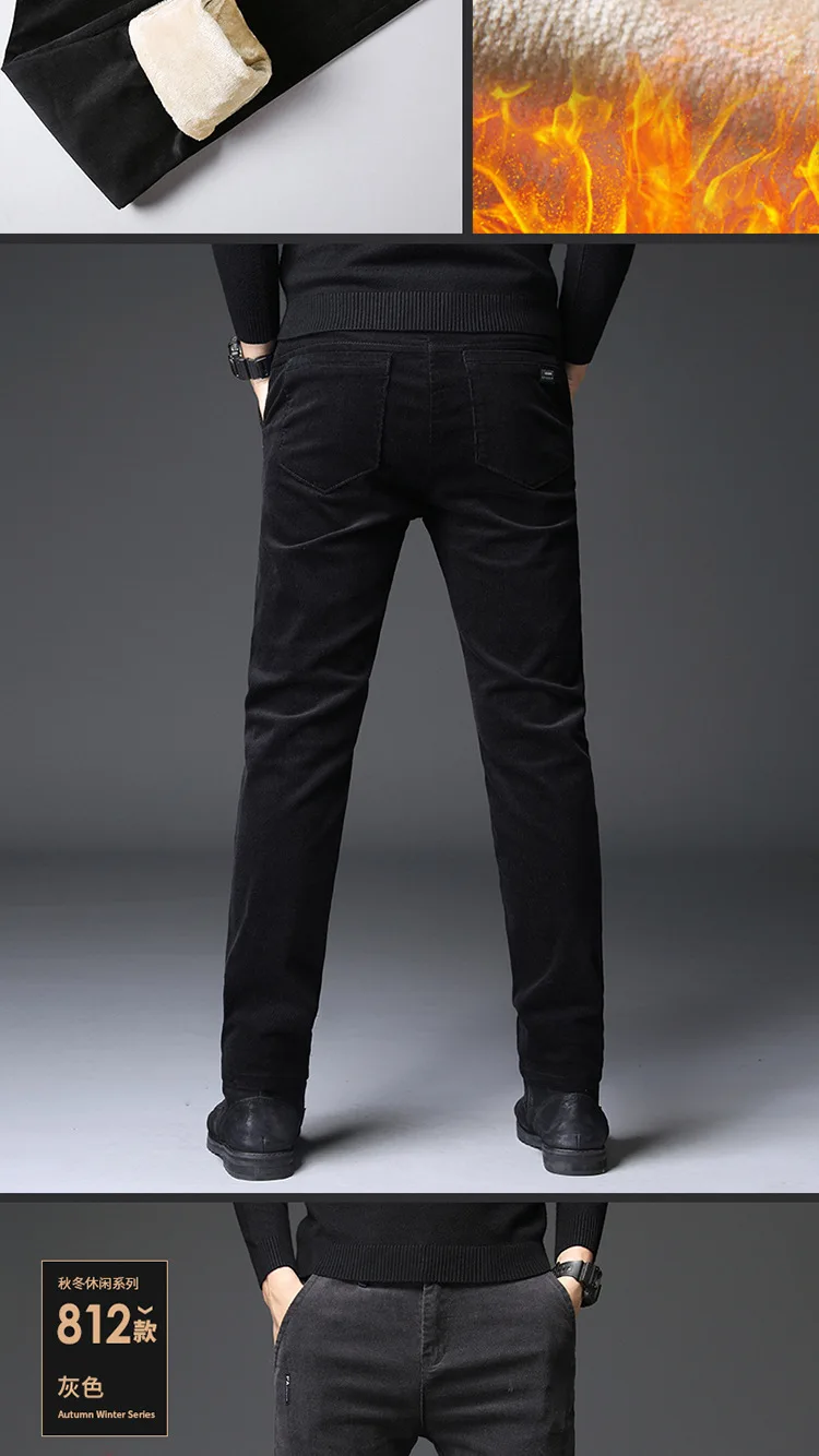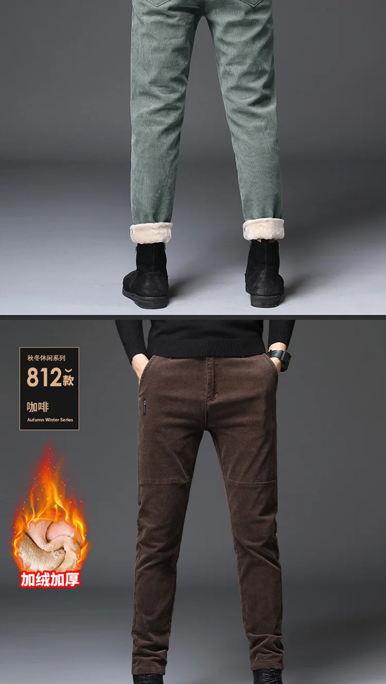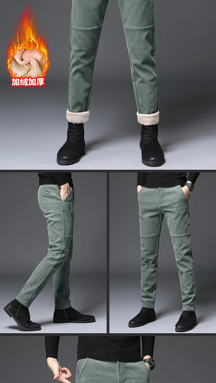 Брюки мужские вельветовые повседневные, Классические деловые модные облегающие утепленные, эластичные брендовые, зимние