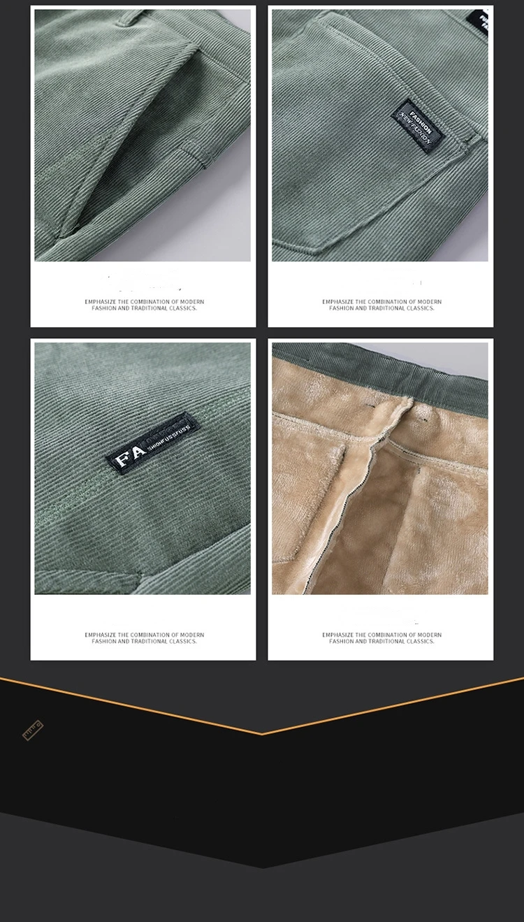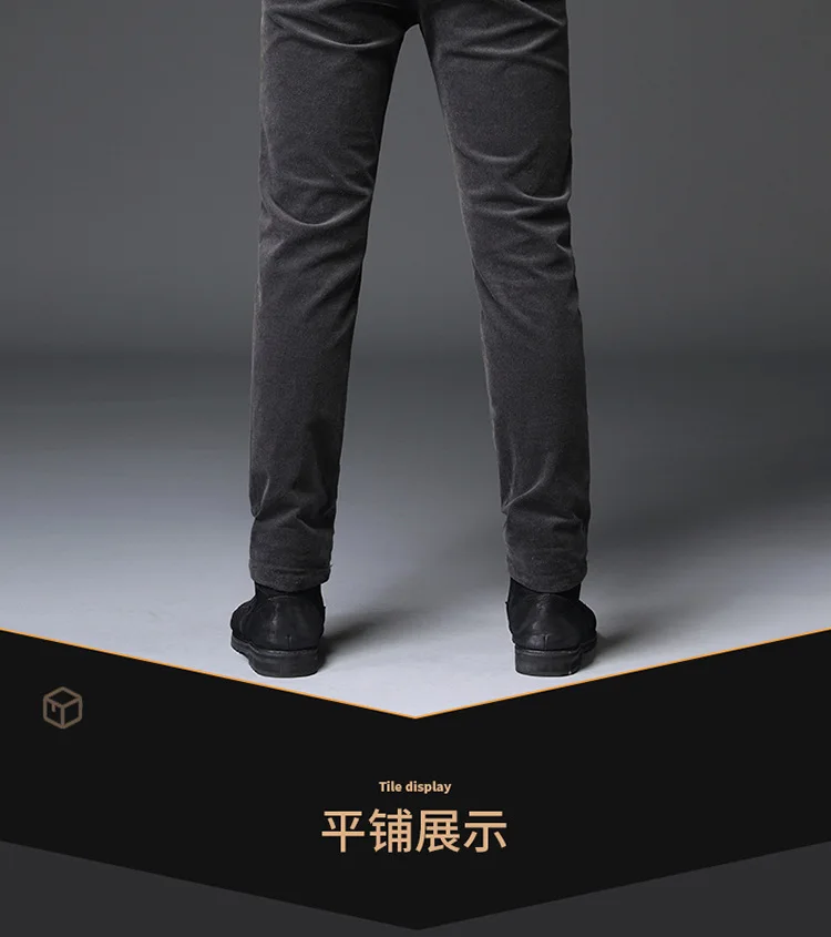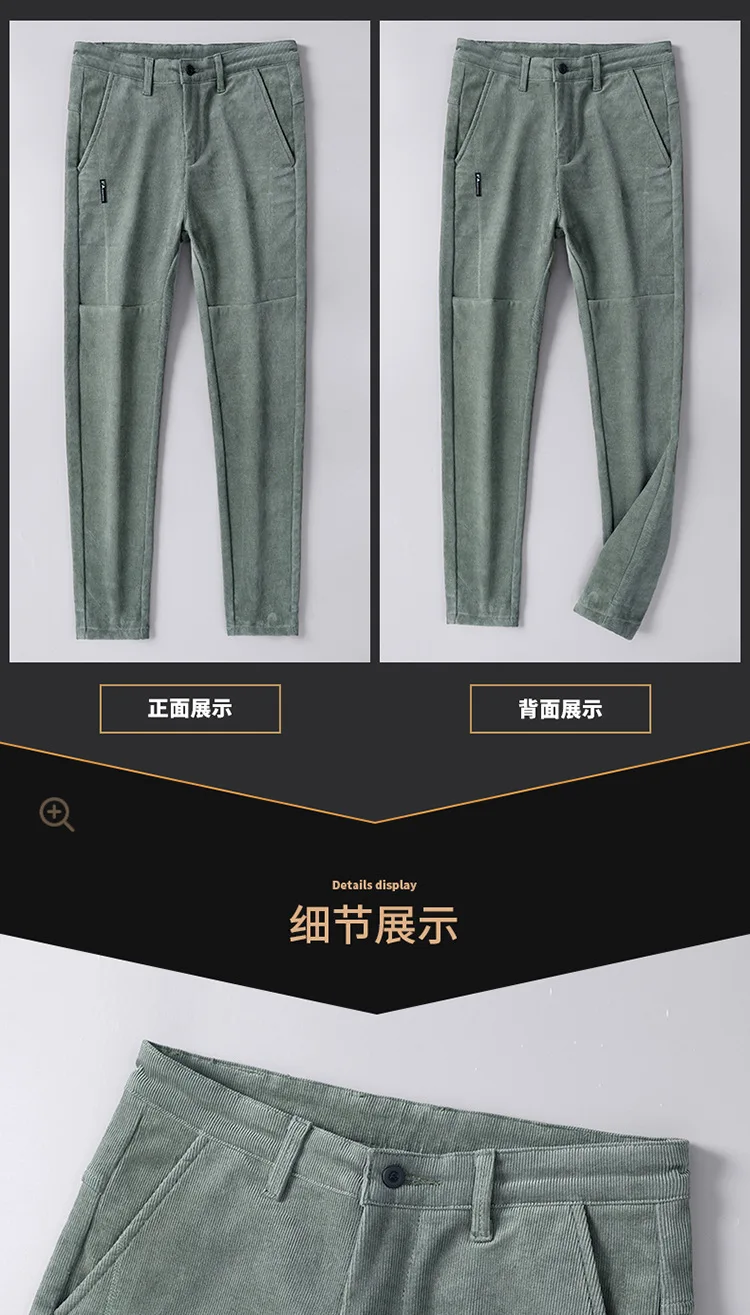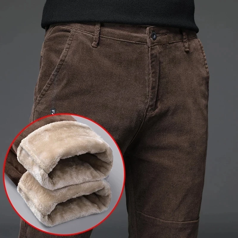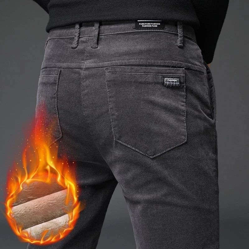Брюки мужские вельветовые повседневные, Классические деловые модные облегающие утепленные, эластичные брендовые, зимние