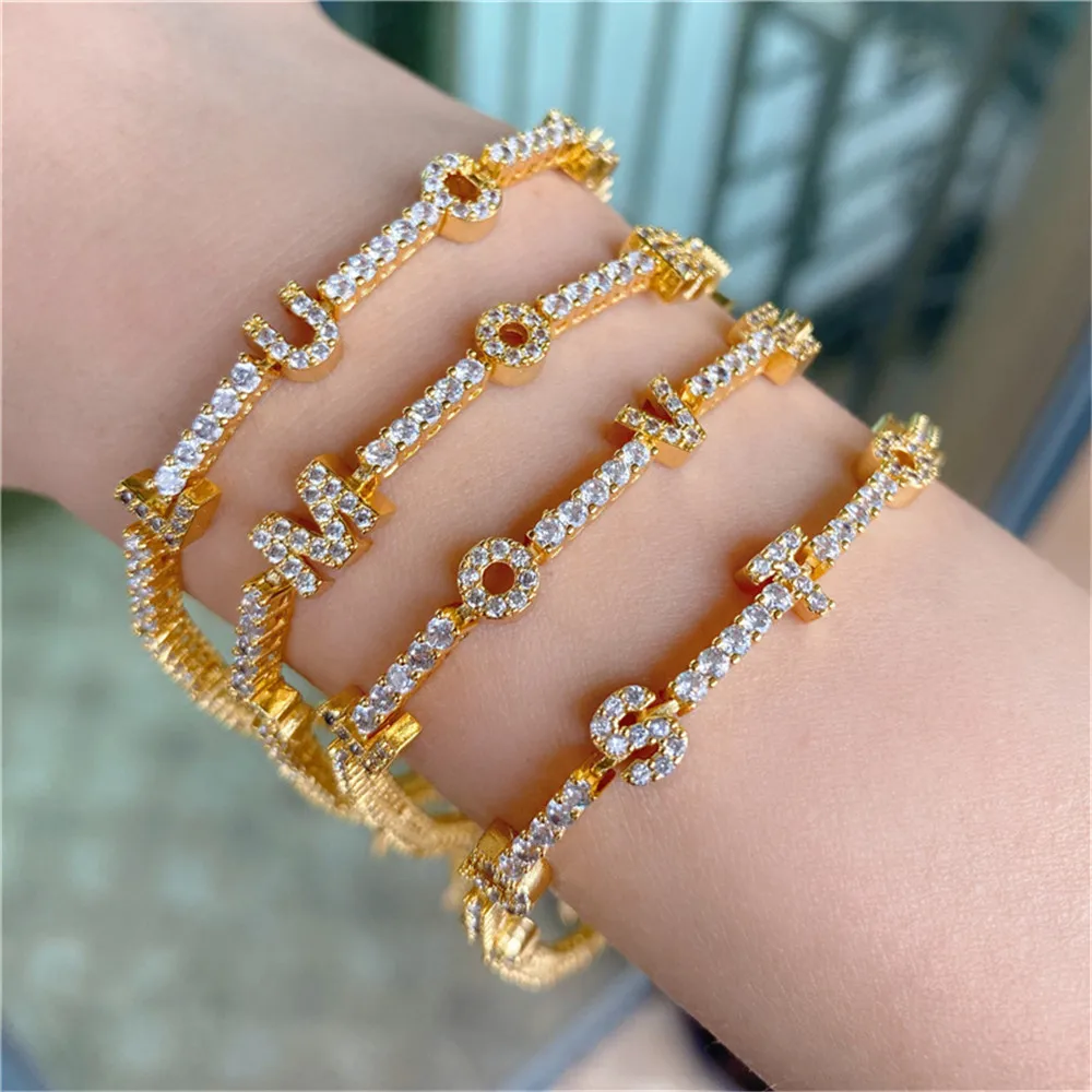 AurolaCo на заказ циркониевая цепочка название браслеты название браслет из нержавеющей стали циркониевая цепочка название браслет для женщин Подарки