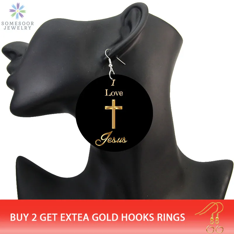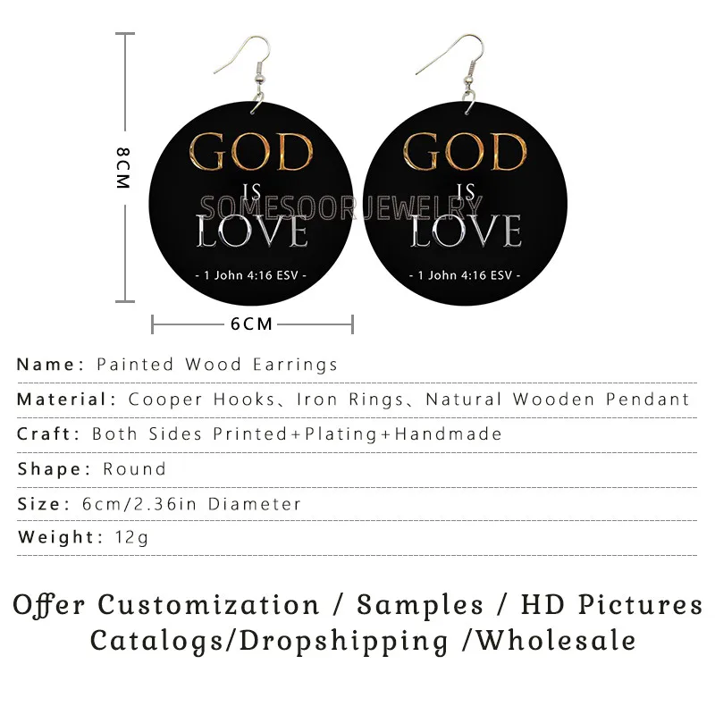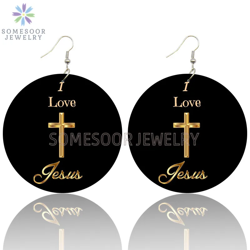 Деревянные висячие серьги SOMESOOR God Is Love, христианские надписи Я люблю Иисуса и Библию, двусторонние Висячие ювелирные изделия с принтом для женщин, подарки