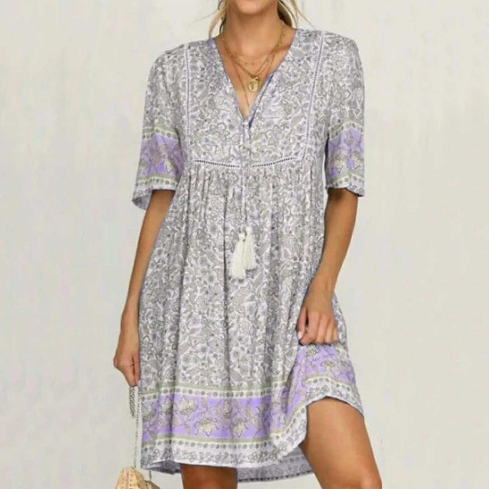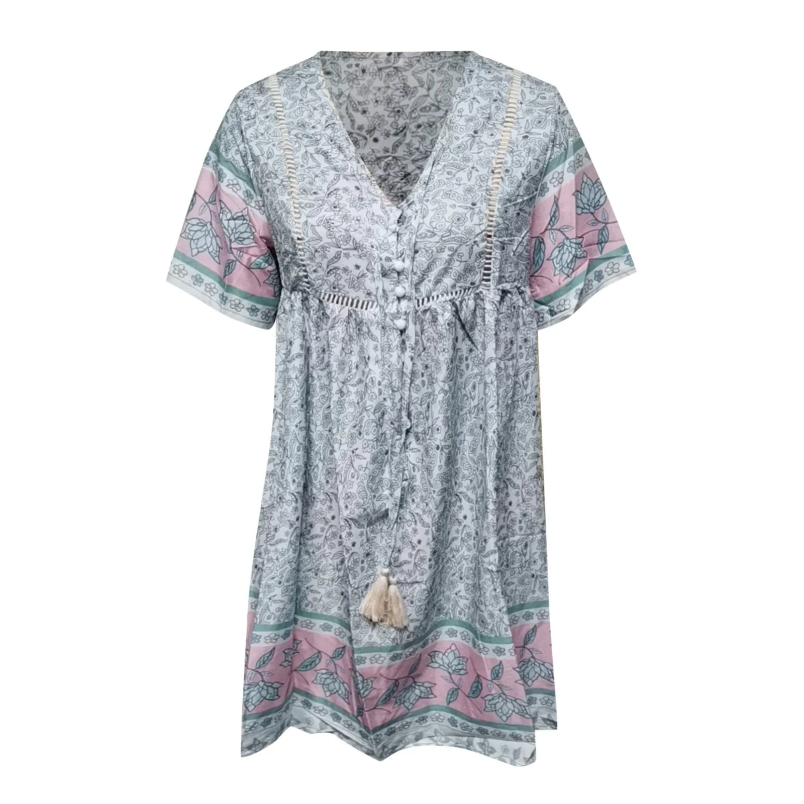 Женское Повседневное платье с цветочным принтом, свободное мини-платье с V-образным вырезом и коротким рукавом на бретелях