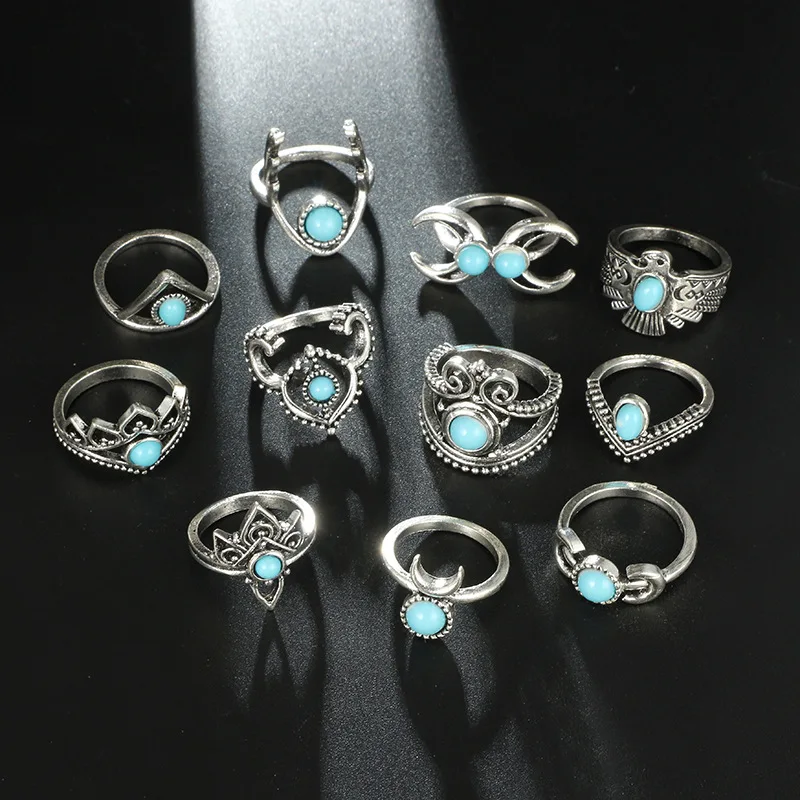 Винтажные Украшения для женщин, кольца на пальцах, зеленые ювелирные изделия, аксессуары для костяшек, набор колец в готическом стиле, нечеткая ведьма 11 шт.компл.