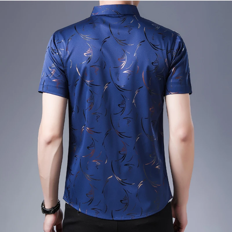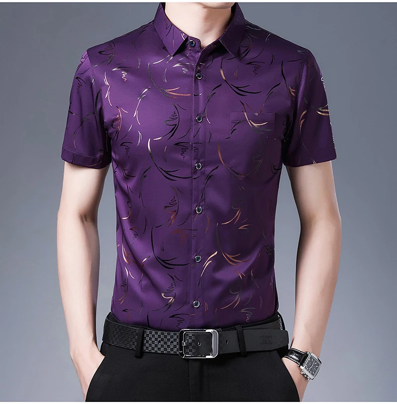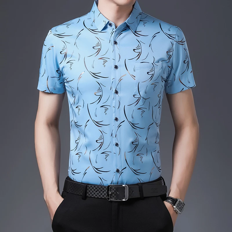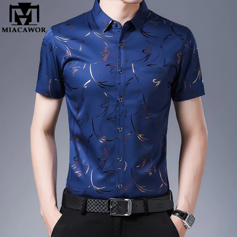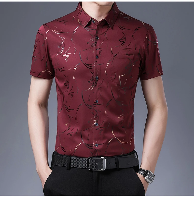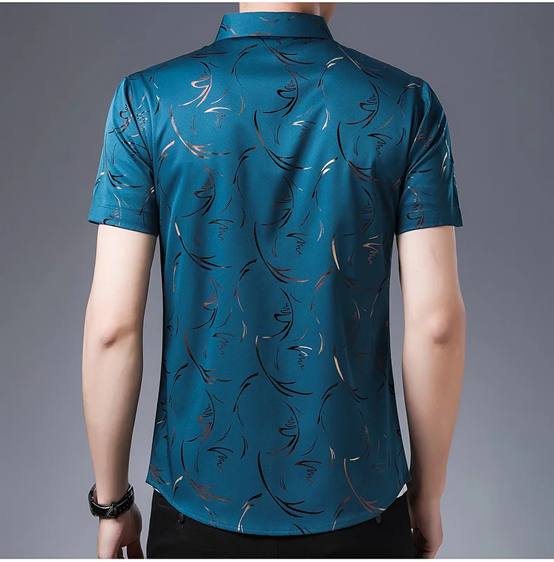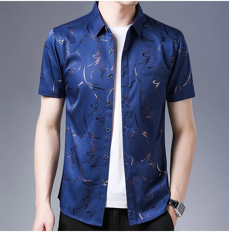 Рубашка мужская с коротким рукавом, шелк, Повседневная приталенная,...