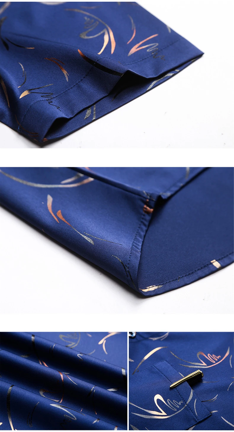 Рубашка мужская приталенная с принтом, шелковая Хлопковая сорочка с...