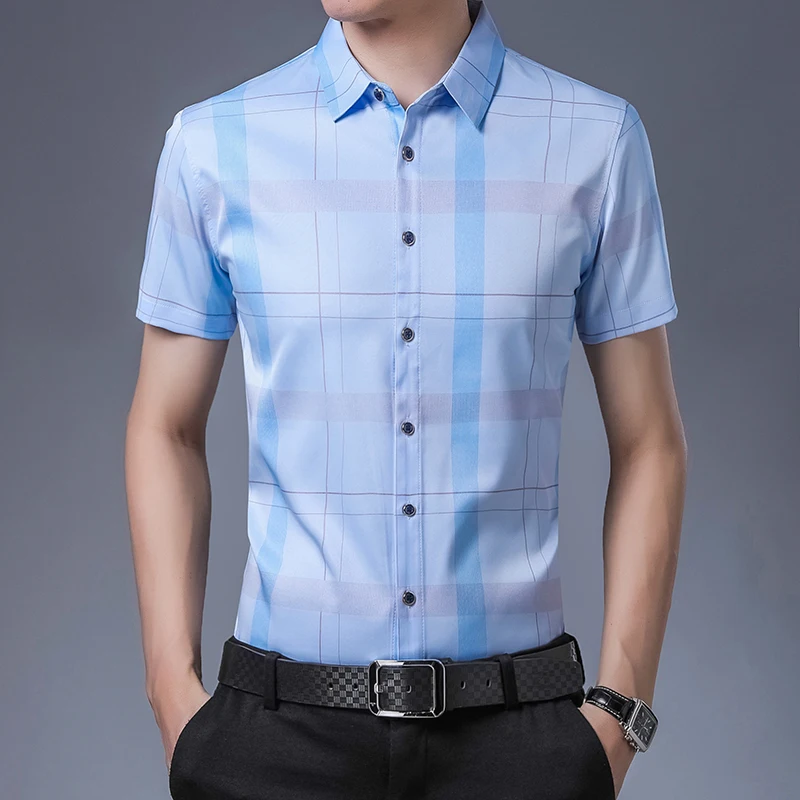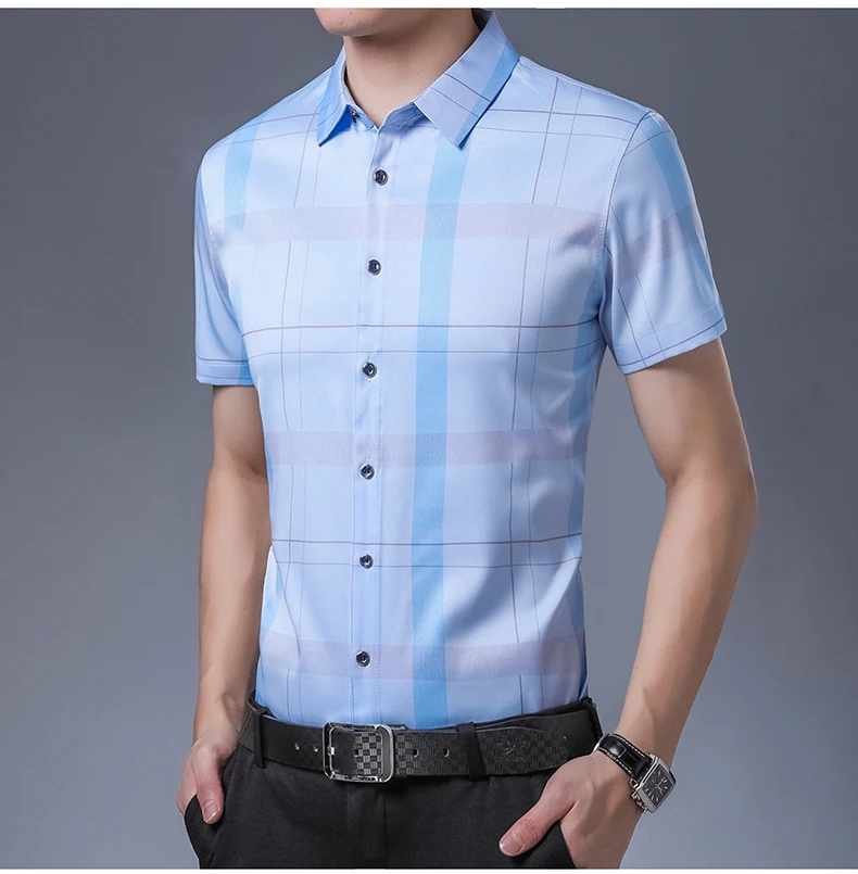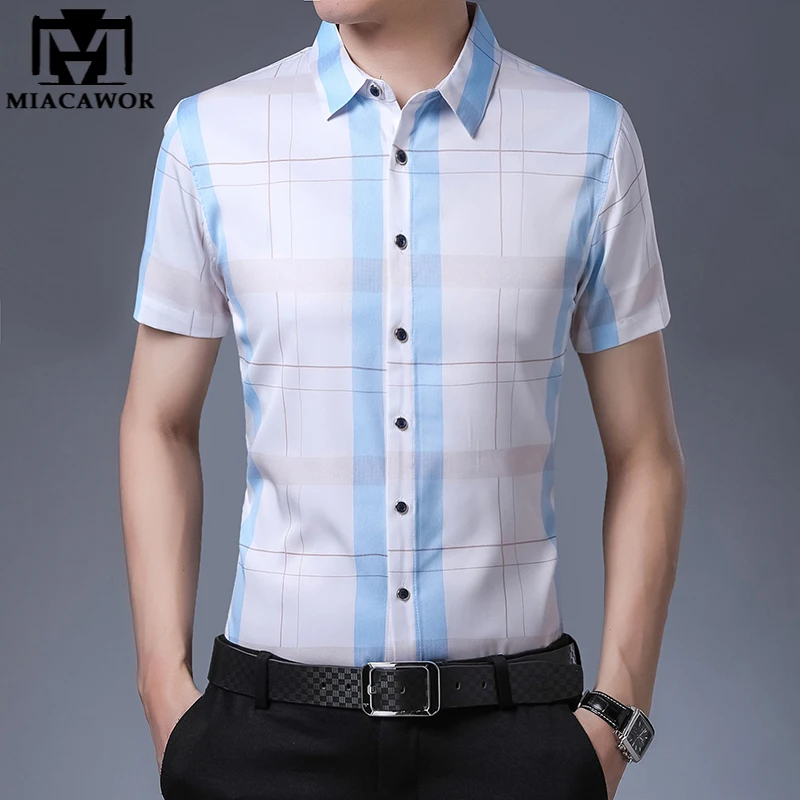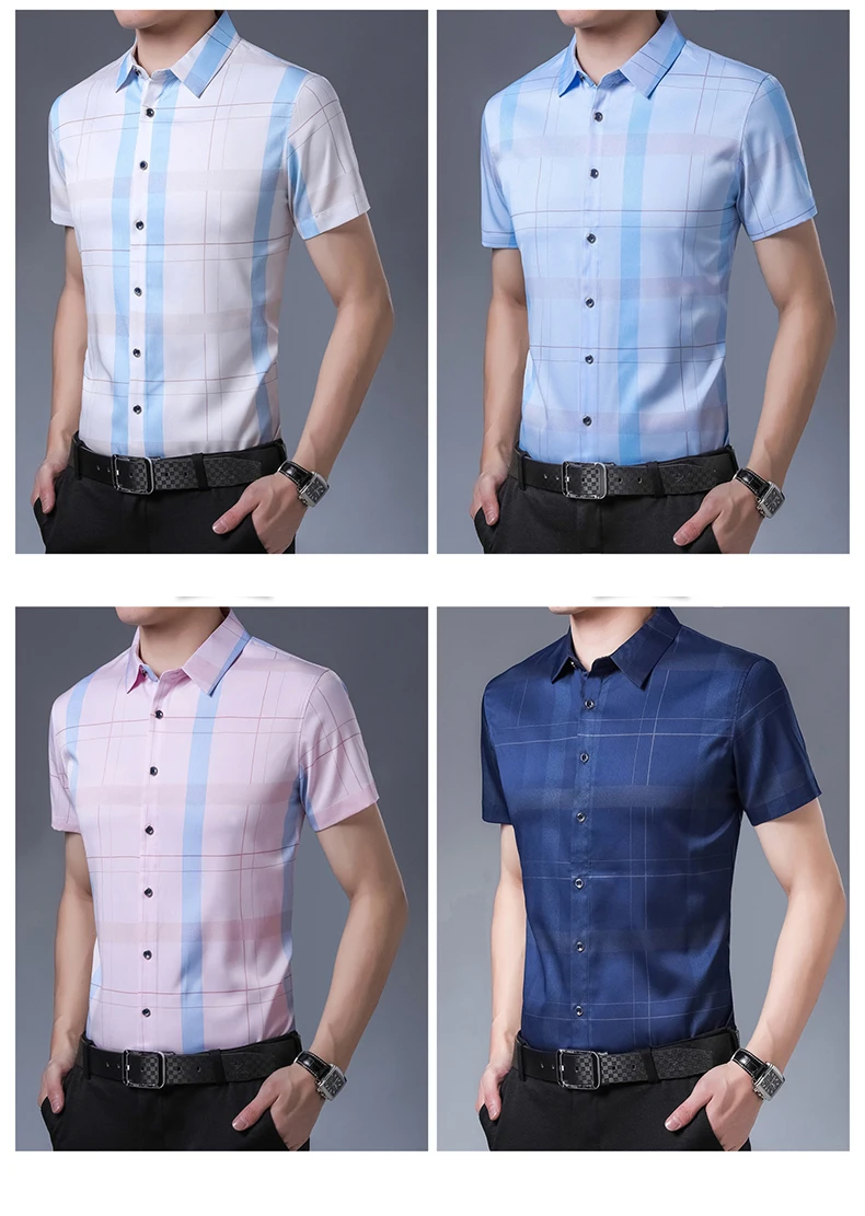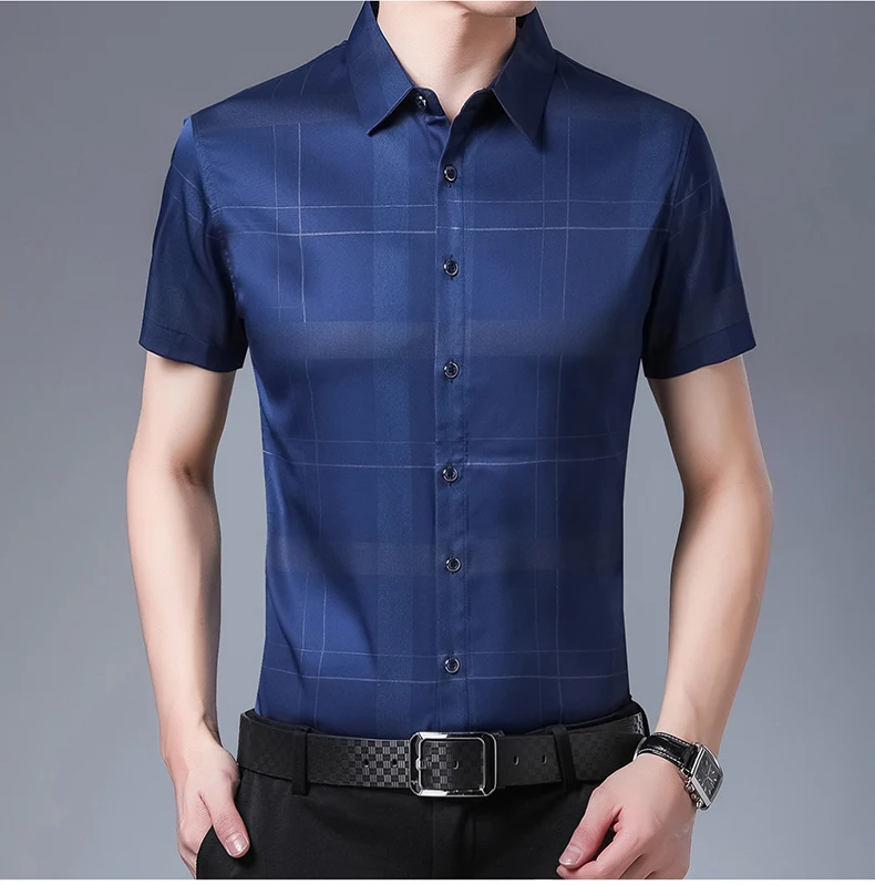 Рубашка мужская, из шелка и хлопка, с коротким рукавом, приталенная, C745, 2021