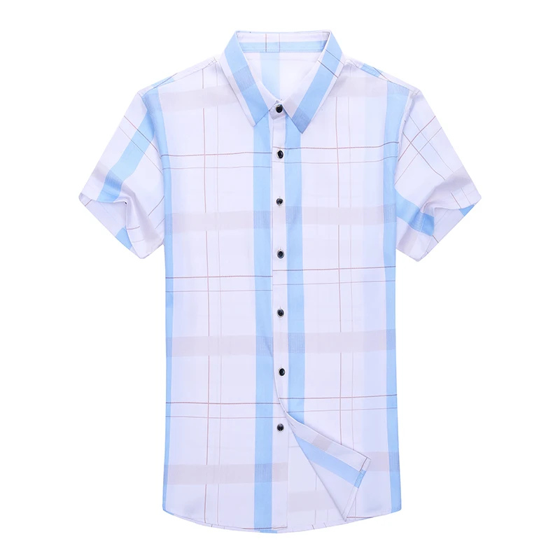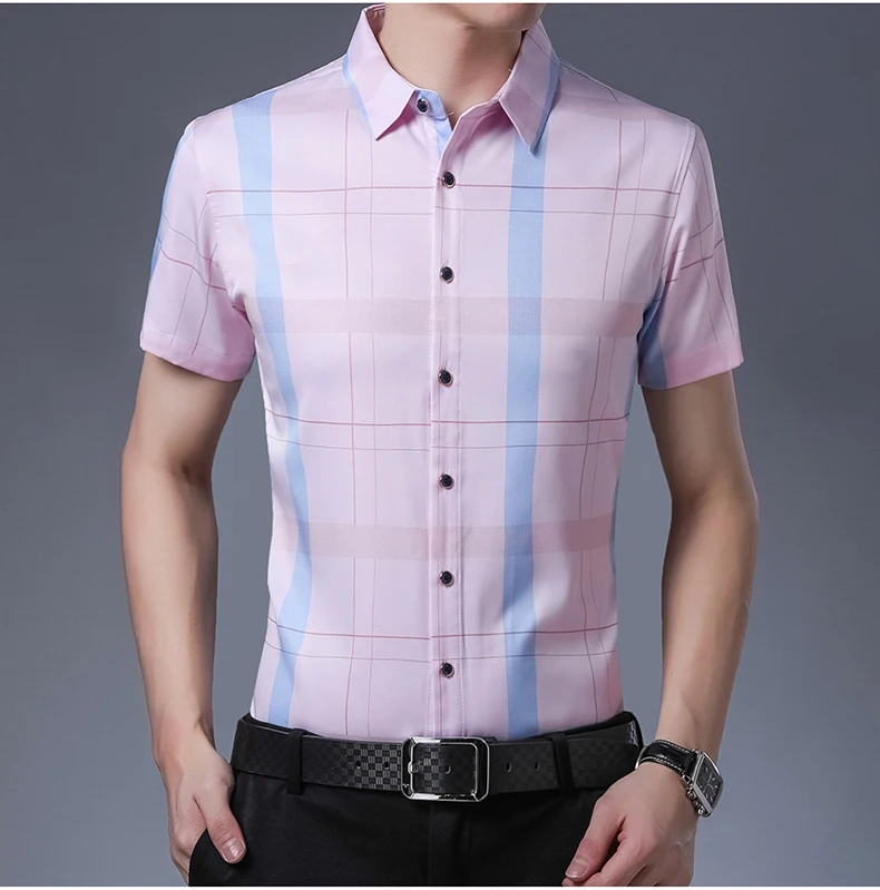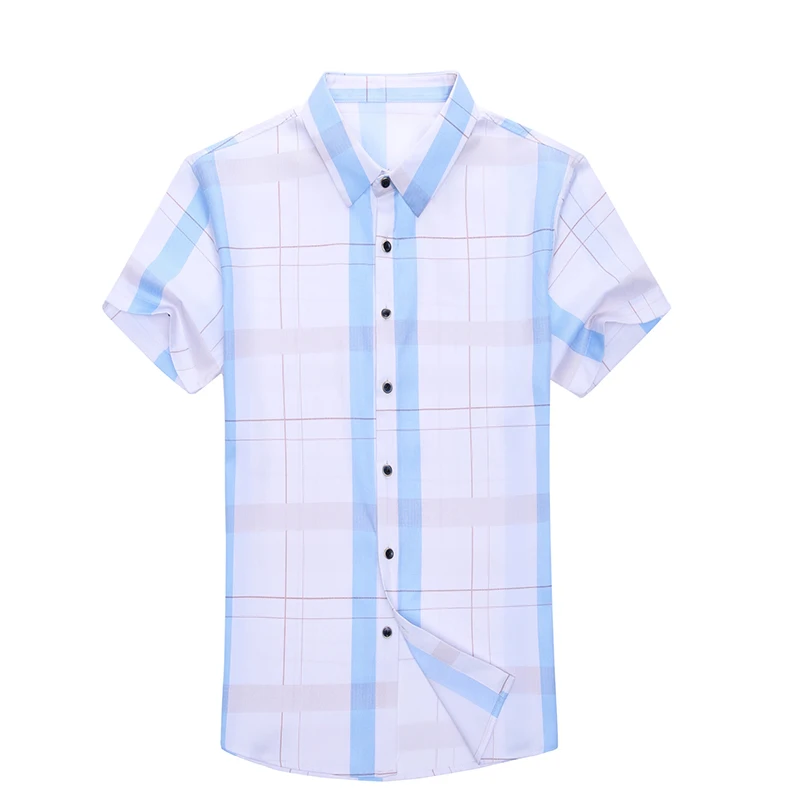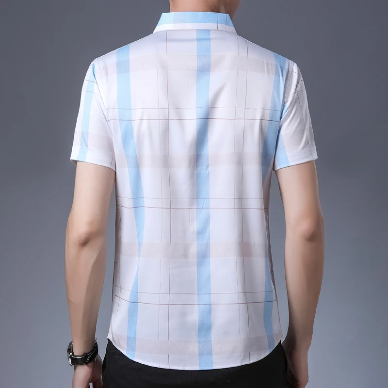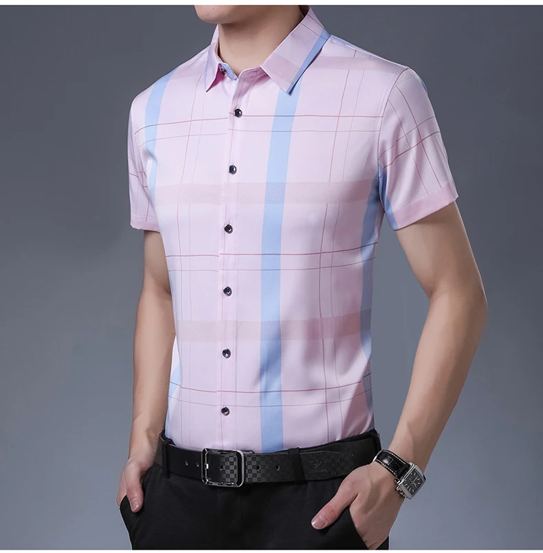 Рубашка мужская, из шелка и хлопка, с коротким рукавом, приталенная, C745, 2021
