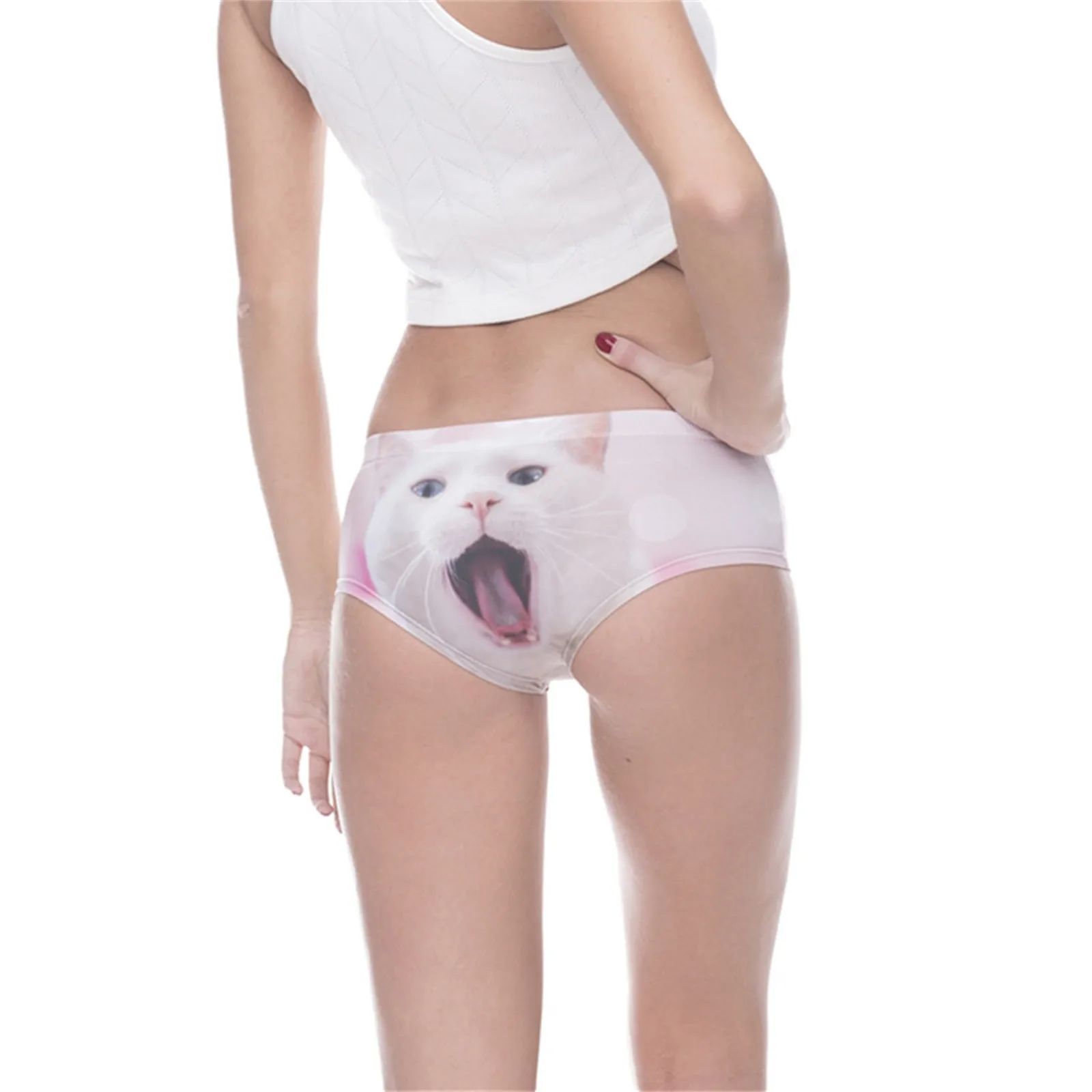 Женское 3D цифровое нижнее белье с принтом белого кота, дышащее нижнее белье с низкой талией