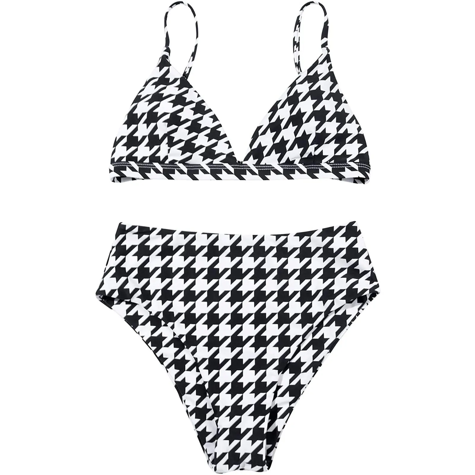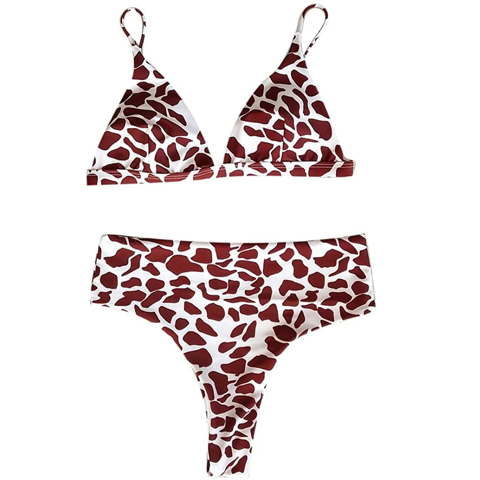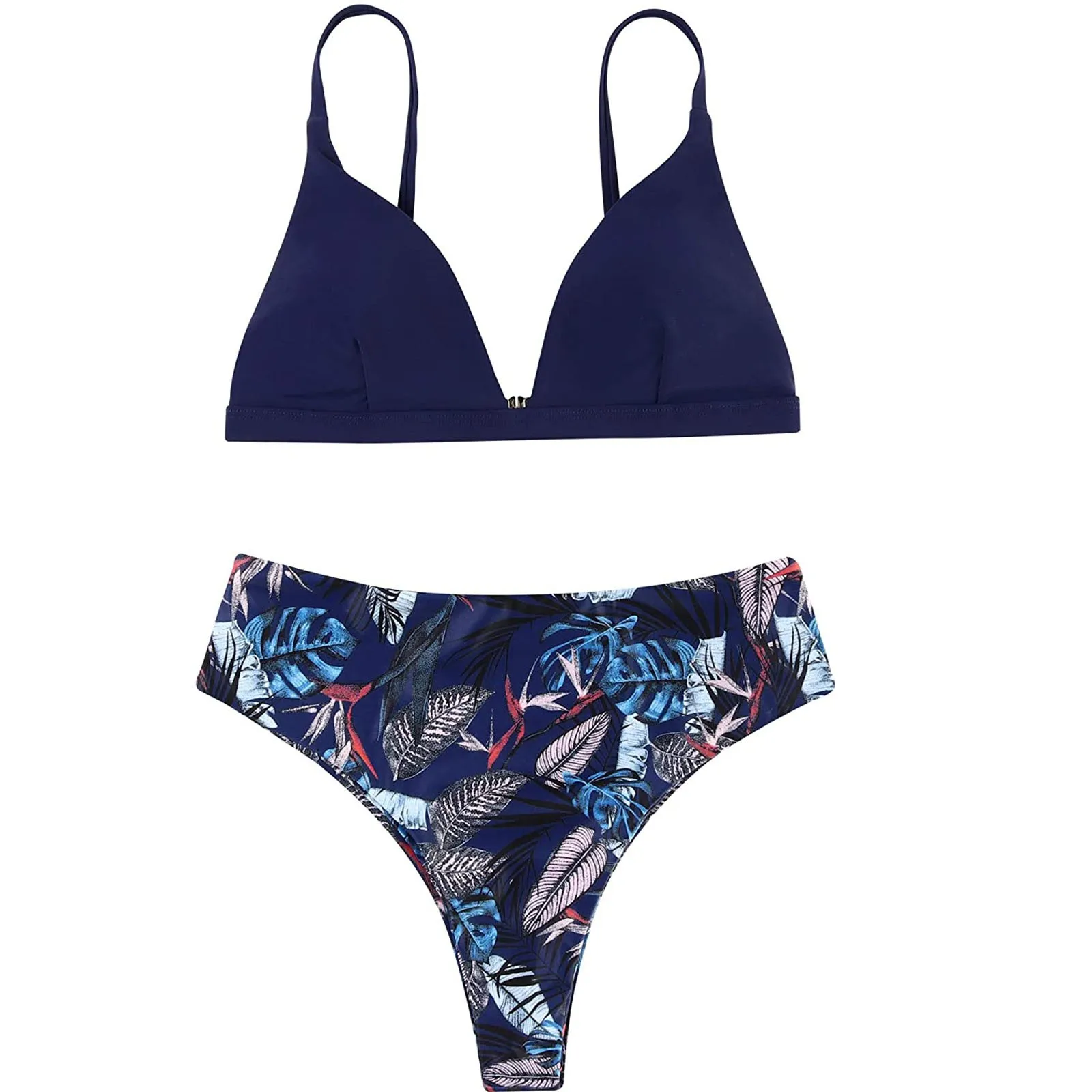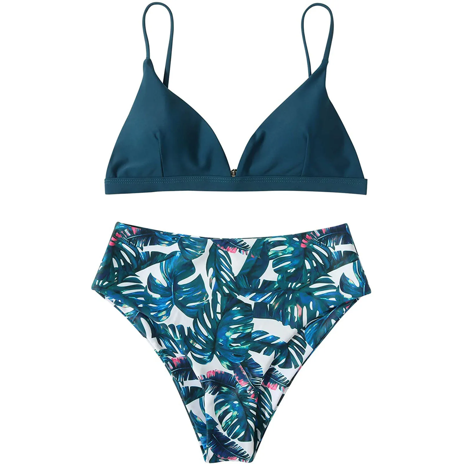 Новинка 2021, женский сексуальный комплект бикини с принтом перекрестных листьев, женский купальник из двух предметов с высокой талией на шнуровке, летние купальники Одежда
