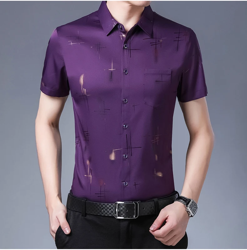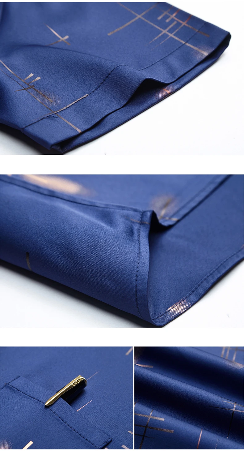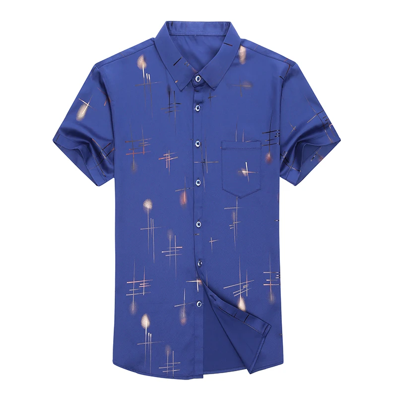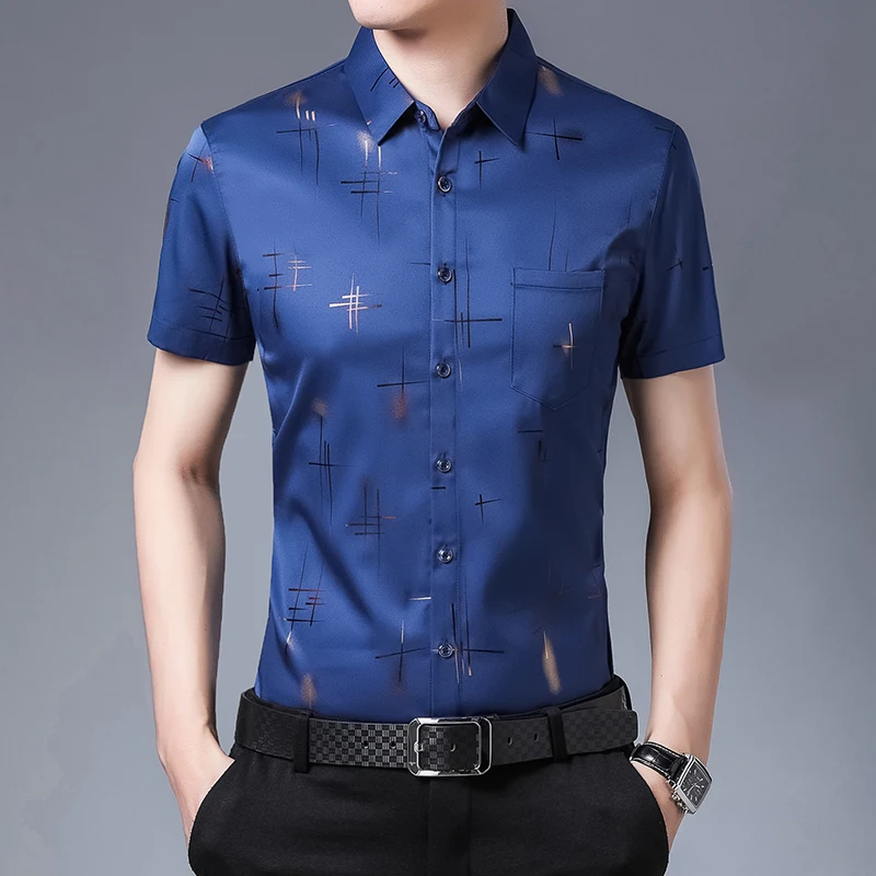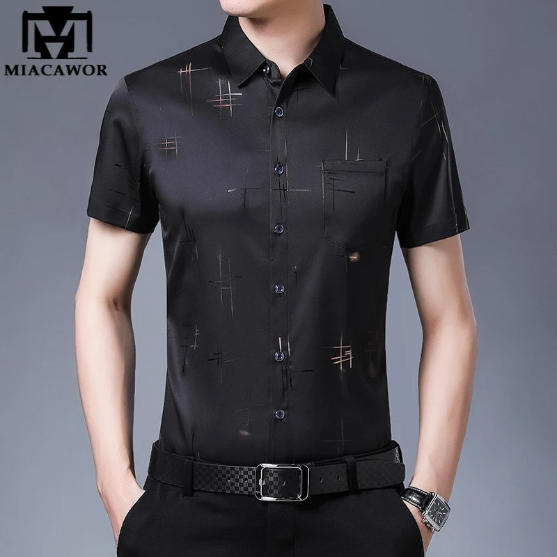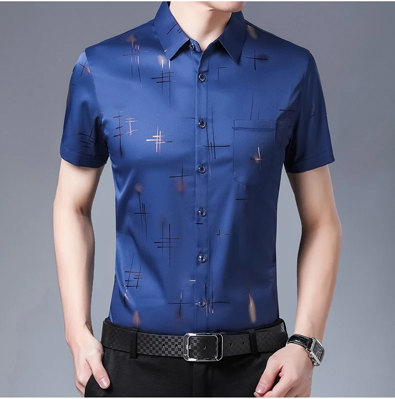Мужская приталенная рубашка, Повседневная шелковая рубашка с коротким рукавом и принтом, модель C746 на лето, 2022