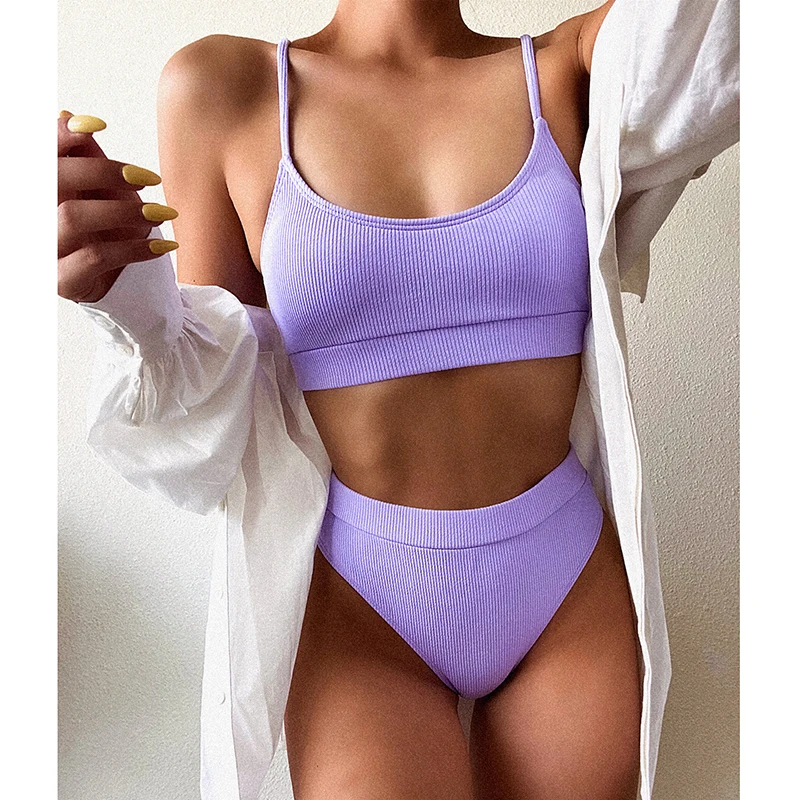 Купальник-бикини женский, с высокой талией, в рубчик, с пуш-ап, 2021