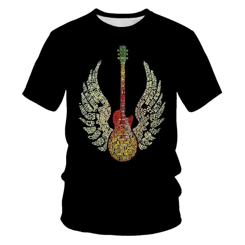 Прохладный гитары Мужская футболка красочные 3D модный музыкальный ...